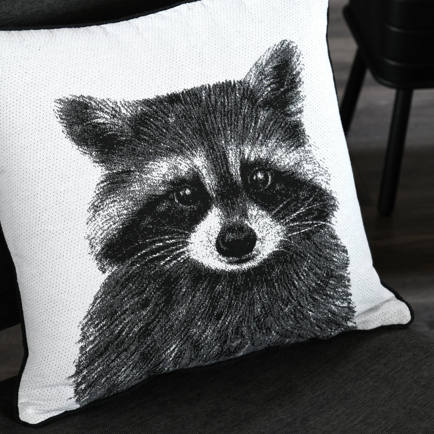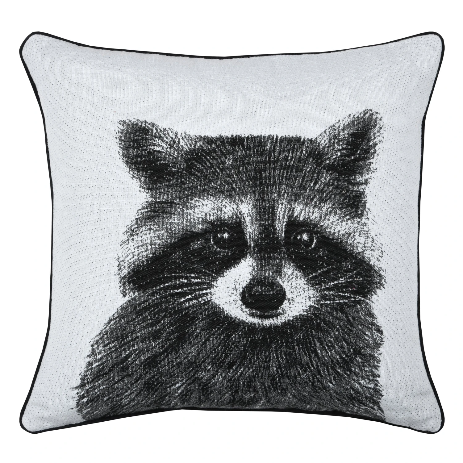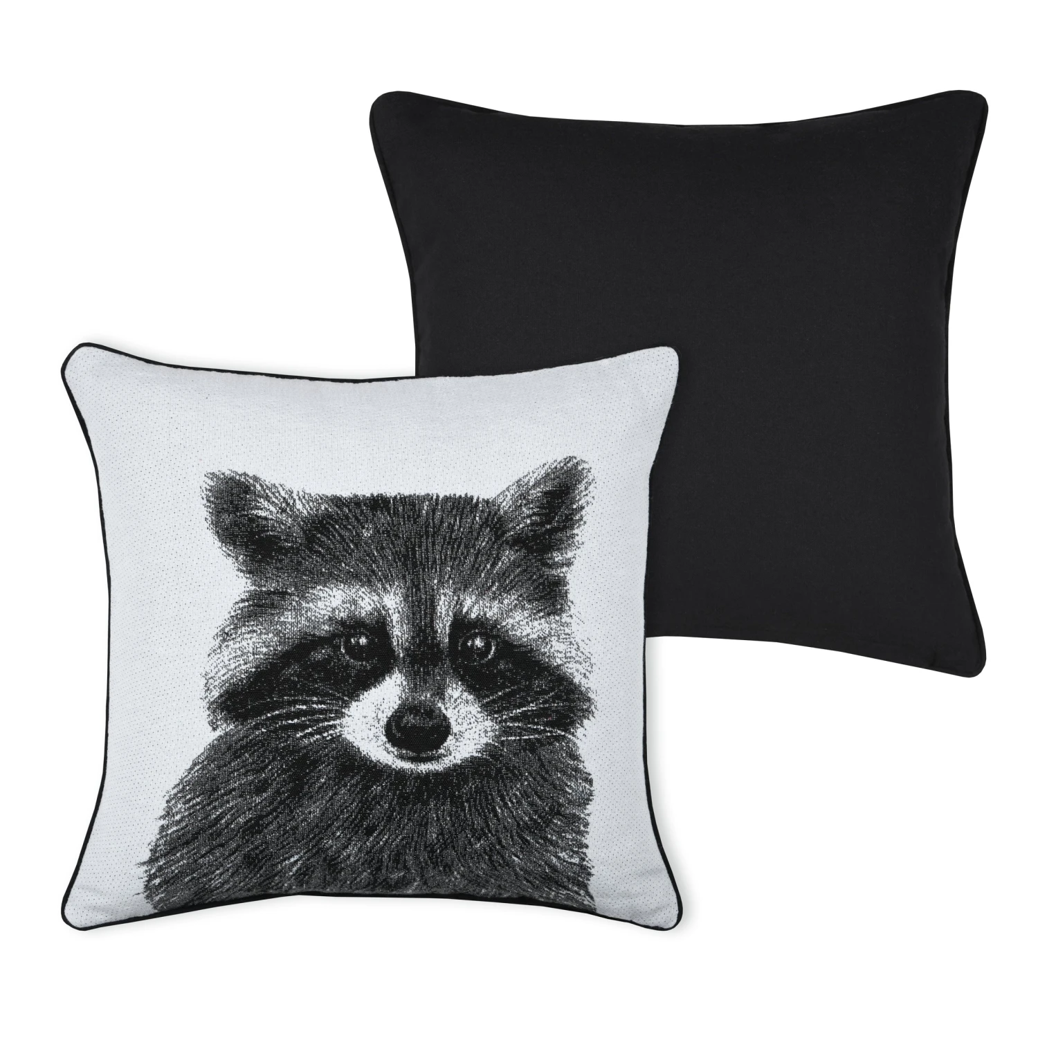 Ce coussin à motif raton laveur donnera un air champêtre et moderne à votre intérieur.