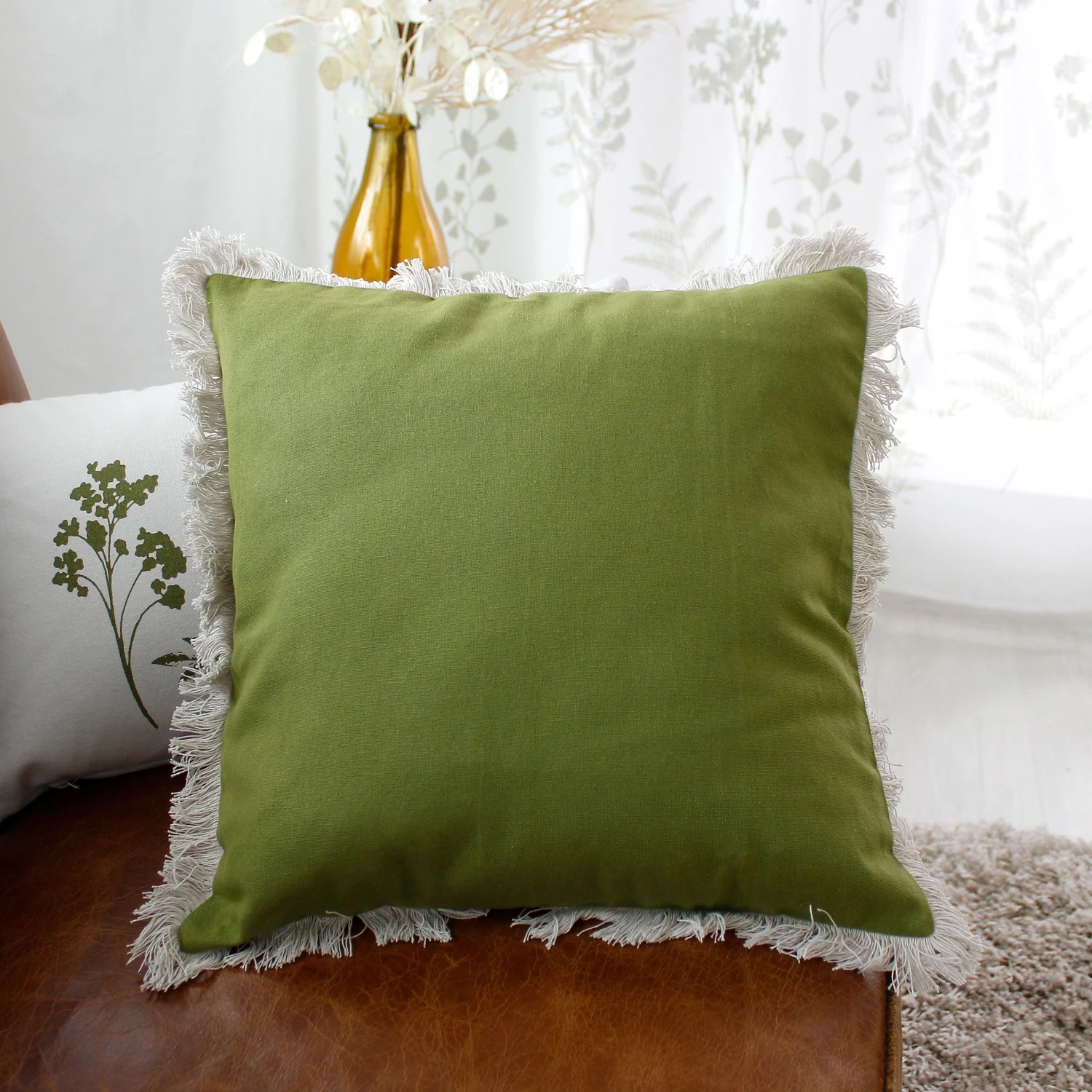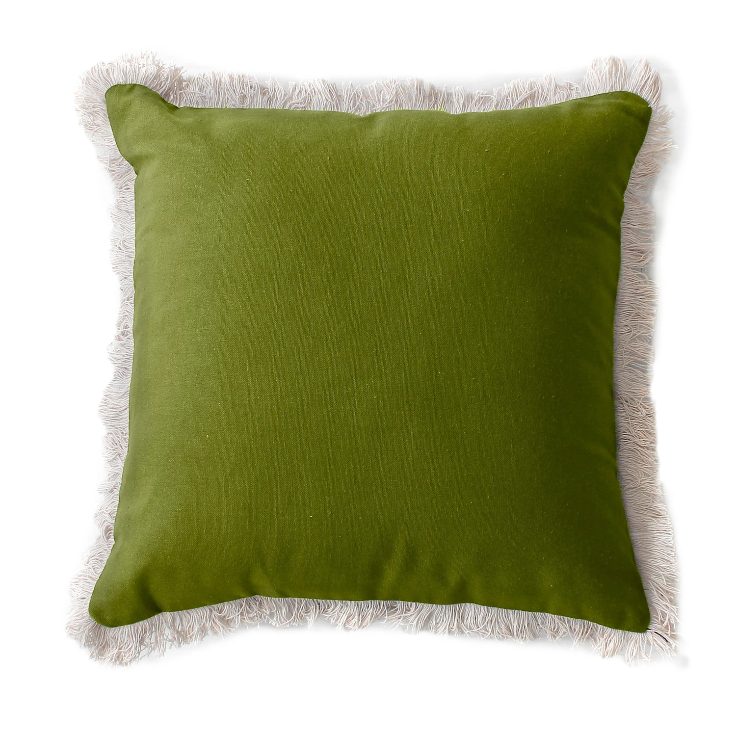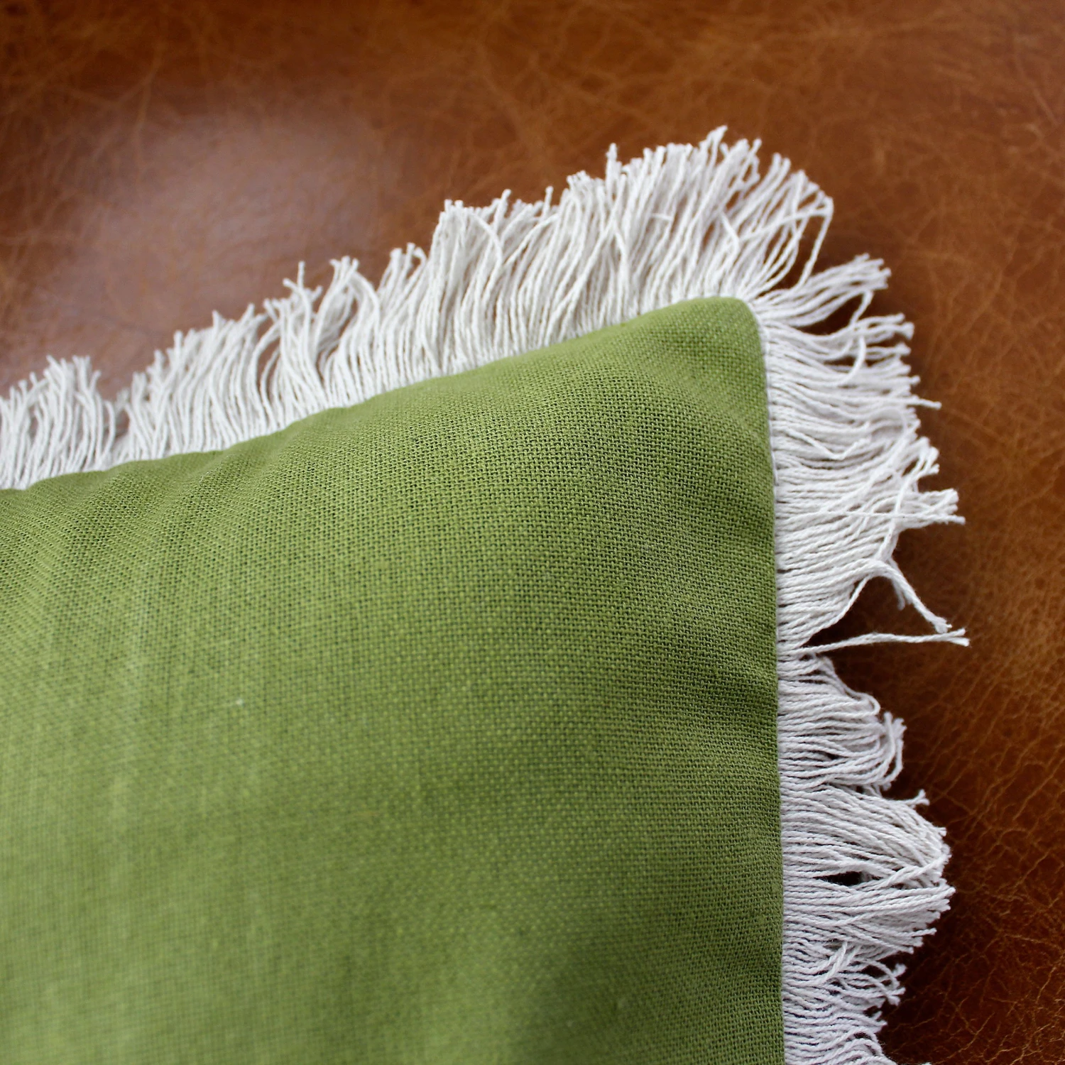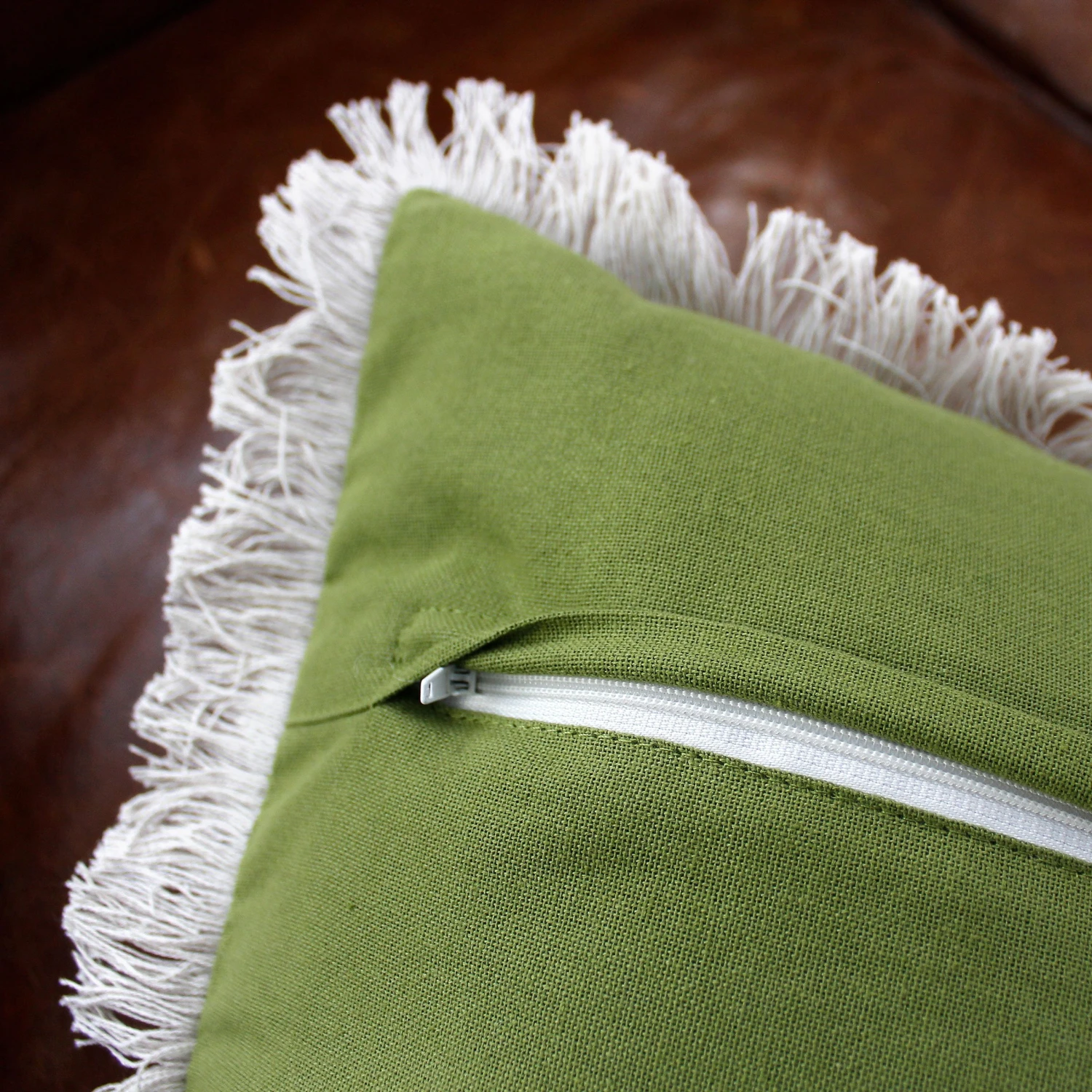 Un coussin à franges douillet et molleux, qui trouvera facilement sa place sur le canapé.