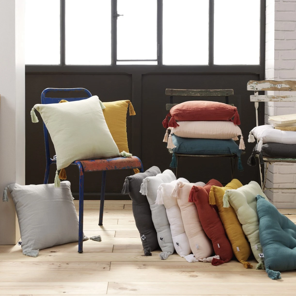 Un coussin aussi stylé que confortable, en gaze de coton très douce.