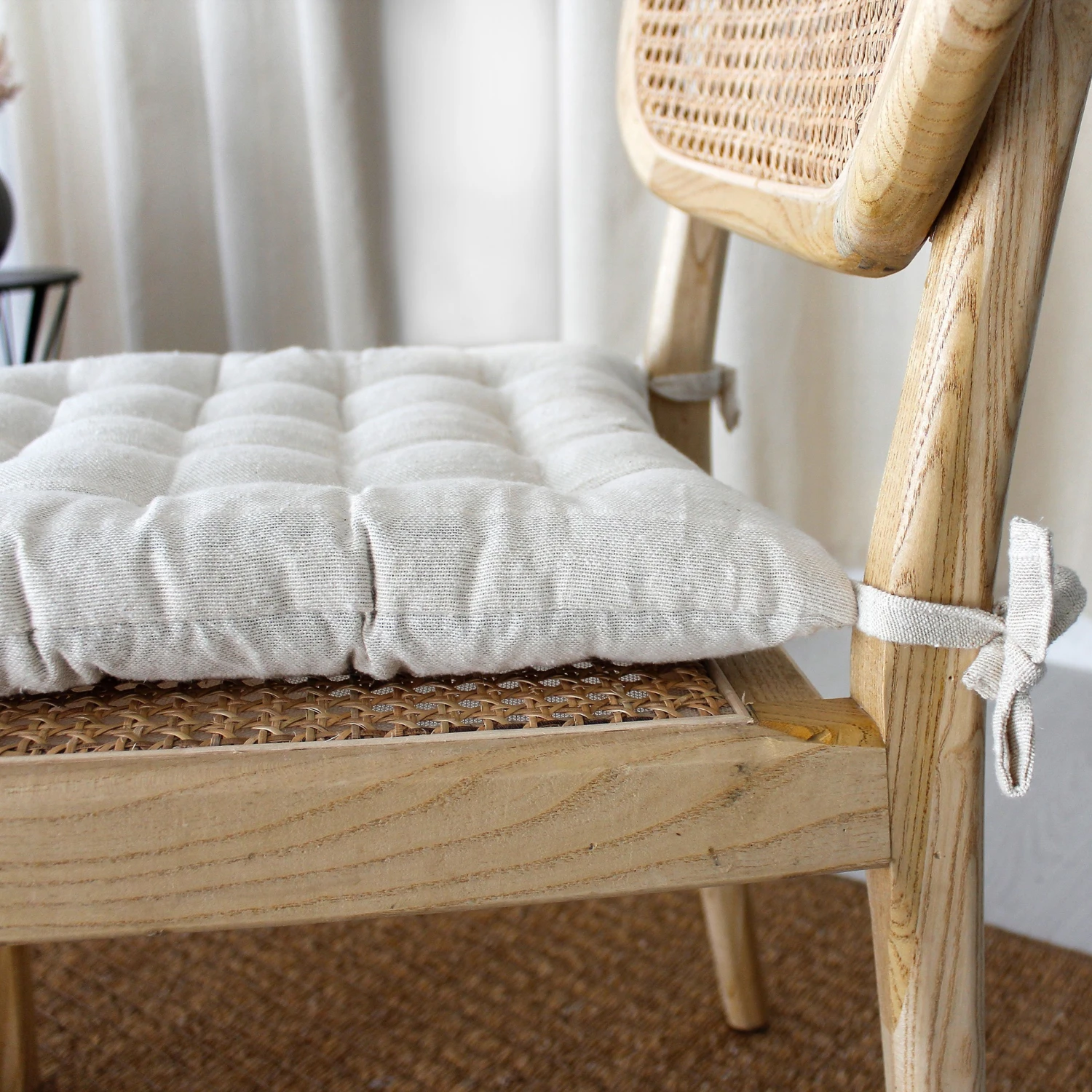 Ce coussin de chaise en coton recyclé possède un effet matière unique, parfait pour plus de cachet et d’authenticité autour de la table.