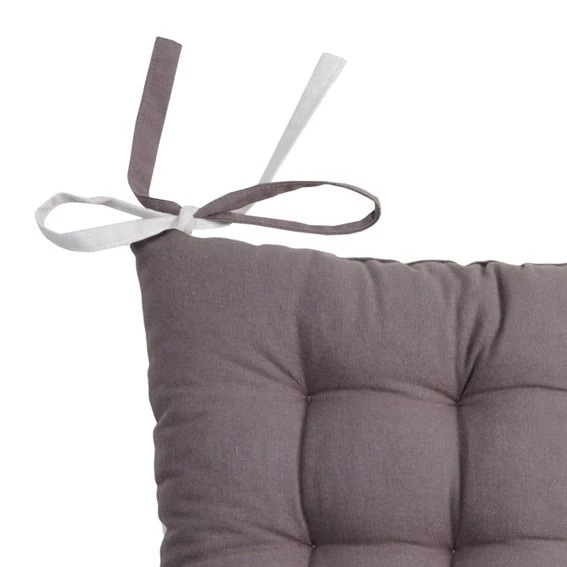 Ce confortable coussin de chaise bicolore possède la particularité d’être biface. Selon vos envies, choisissez entre le côté uni gris foncé ou gris perle.