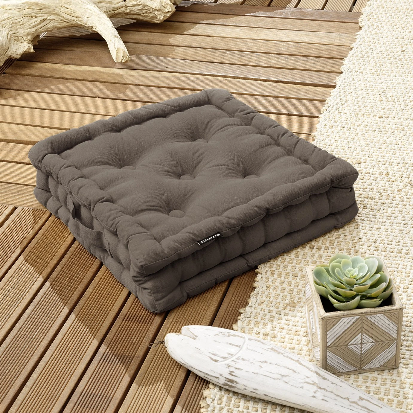 Vous allez adorer retrouver ce coussin de sol Ă la couleur chaleureuse dans le jardin.