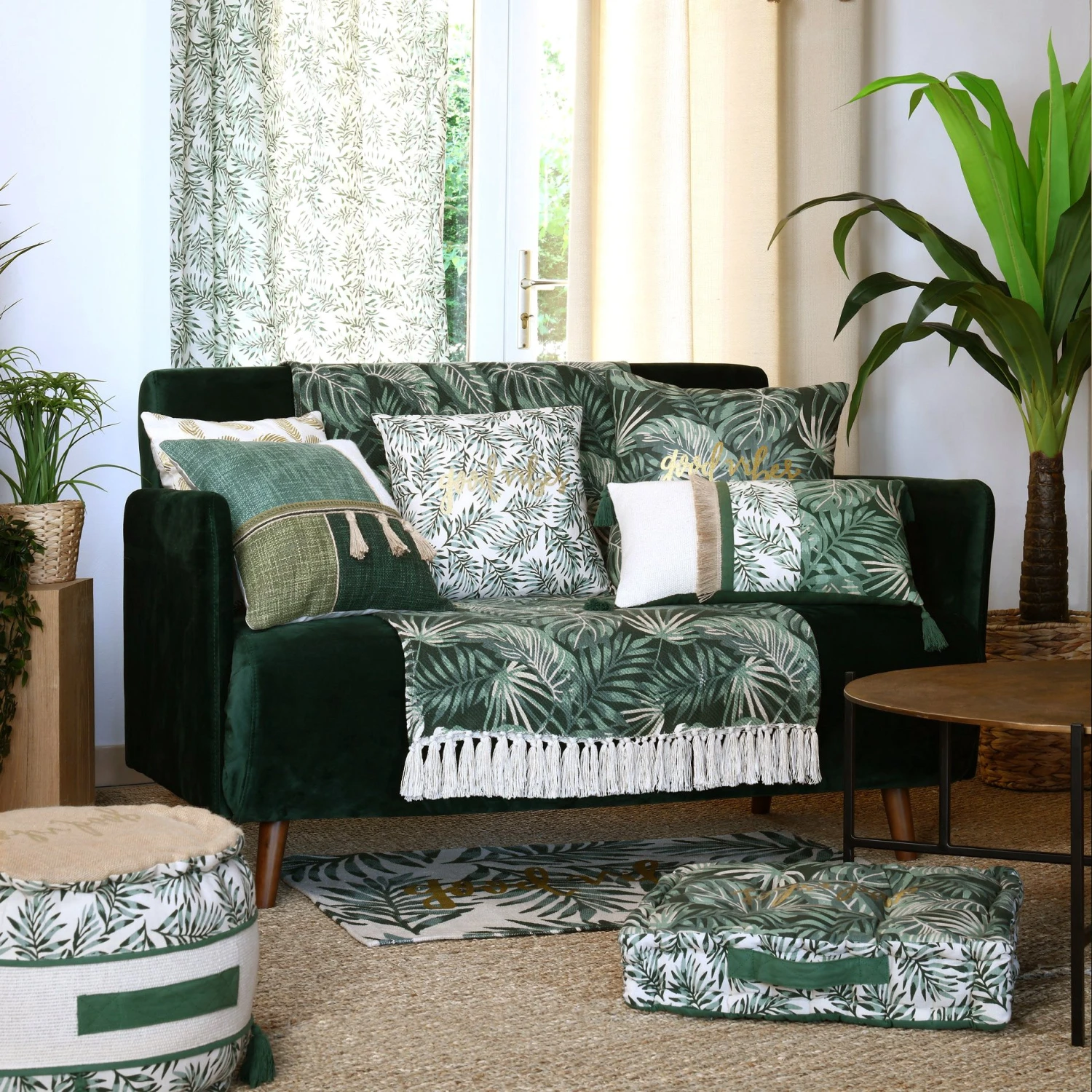 Craquez pour ce coussin de sol en coton, ultra tendance au look exotique chic.