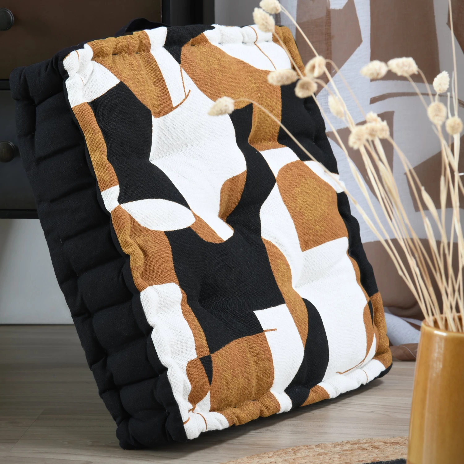 Ambiance trendy dans votre salon avec ce coussin de sol en coton à motif graphique.