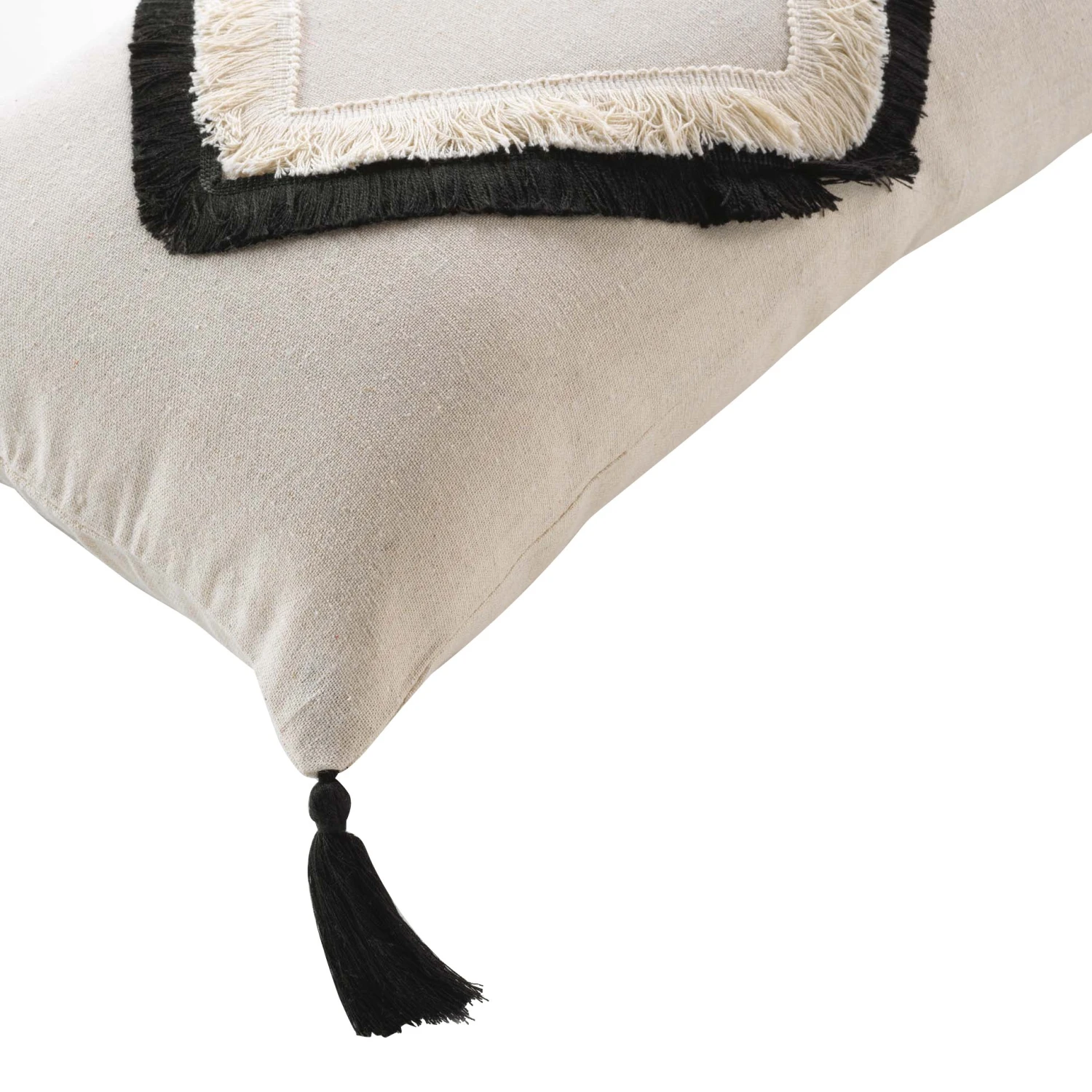 Imprimé : coussin à motif ethnique au recto et uni au verso.