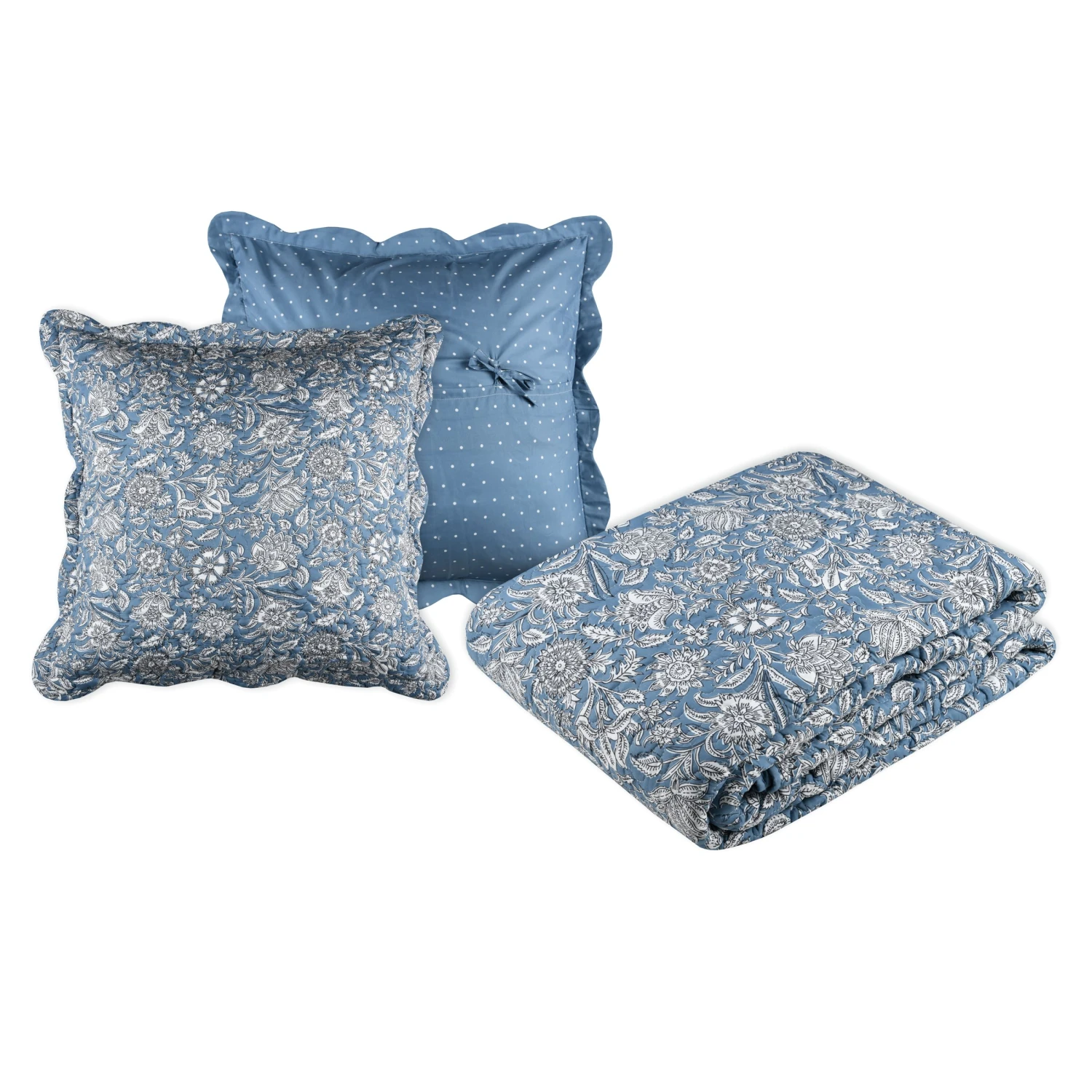 Cet Ă©lĂ©gant couvre-lit, Ă la couleur bleu intense, est vendu avec sa taie d’oreiller assortie.