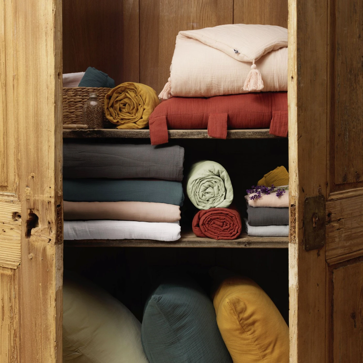 La gaze de coton est une matière douce et confortable, qui s’inscrit dans la tendance des matières naturelles et faciles à vivre.