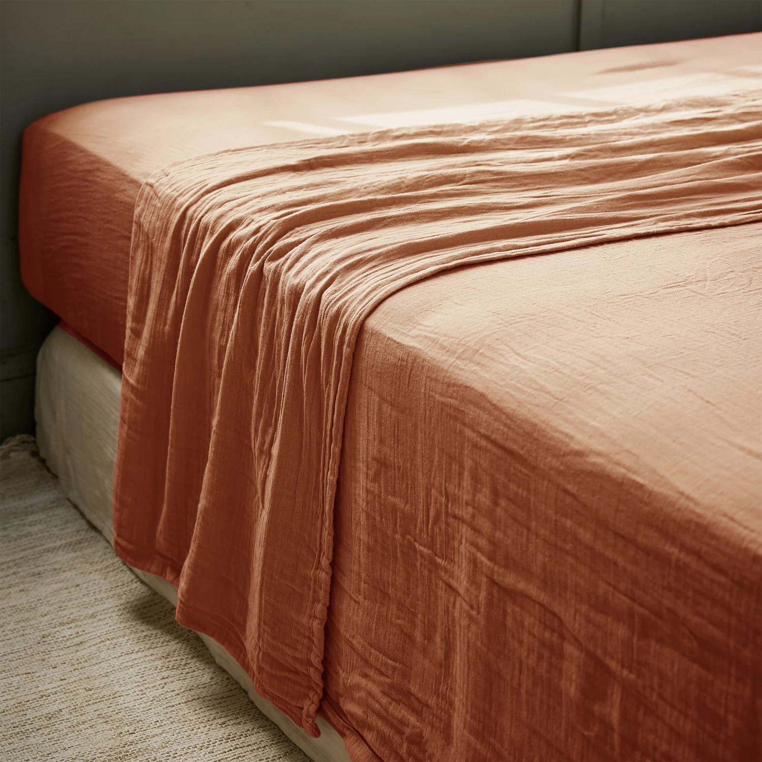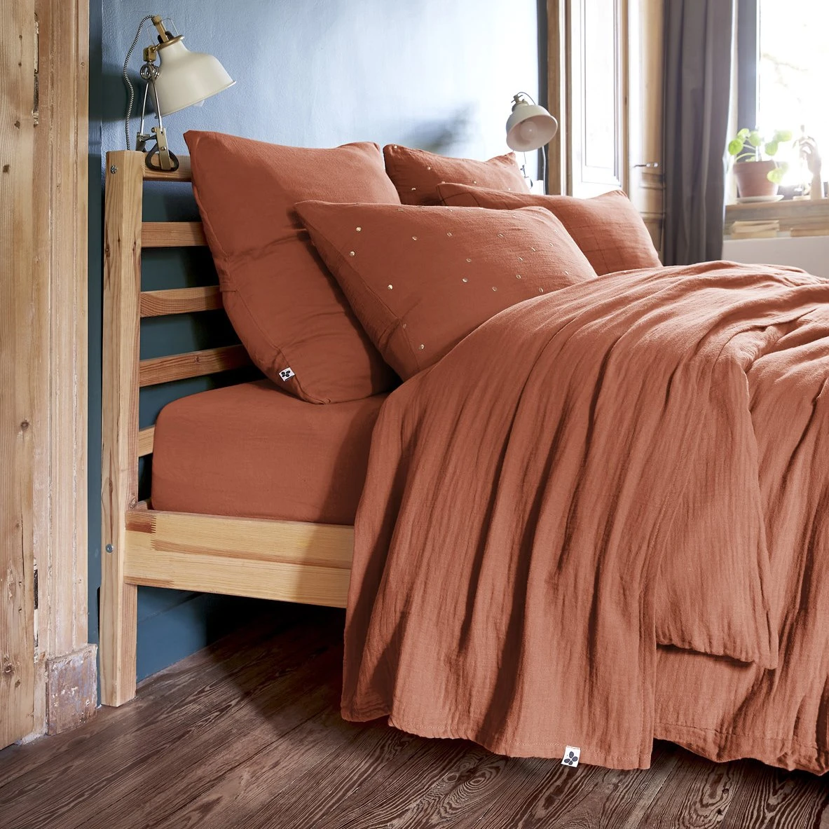 Ce drap plat en gaze de coton est frais et léger, il est parfait pour apporter du confort sur le lit. Vous pouvez l’associer au linge de lit de la collection Gaïa, une collection en gaze de coton au style naturel et très authentique.