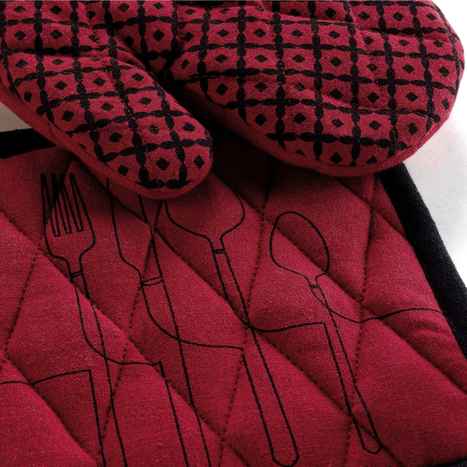 Imprimé : gant et manique à motif graphique.