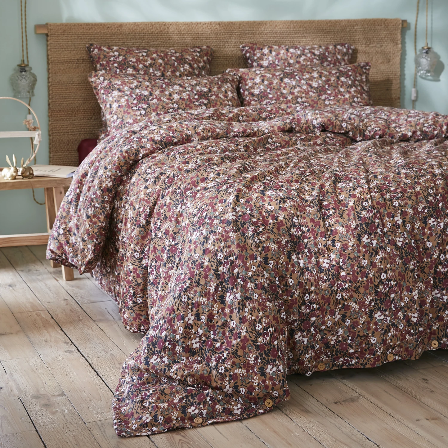 Imprimée : housse de couette à motif fleuri au recto et verso.