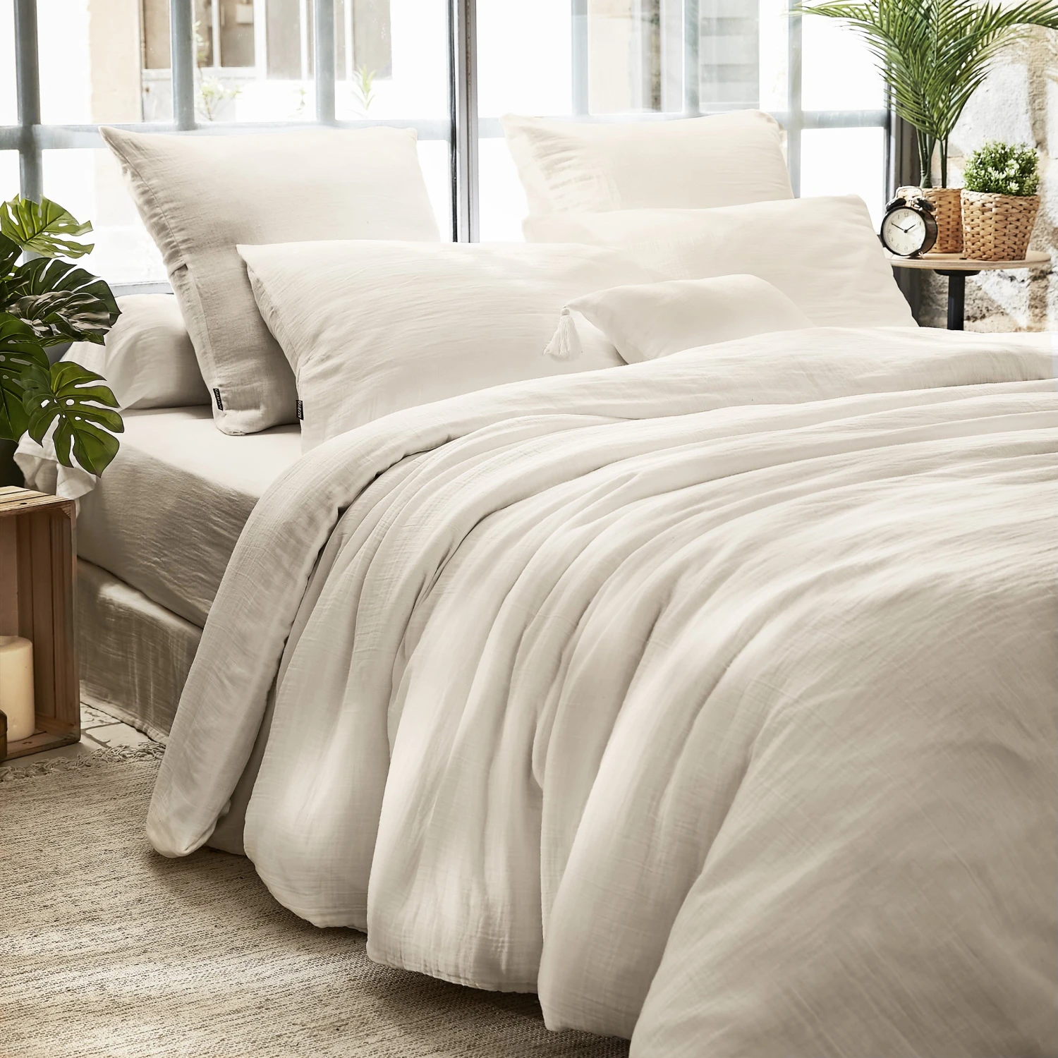 La gaze de coton est la matière légère et confortable par excellence. Avec cette housse de couette à la couleur douce, vous allez passer de belles nuits de sommeil.