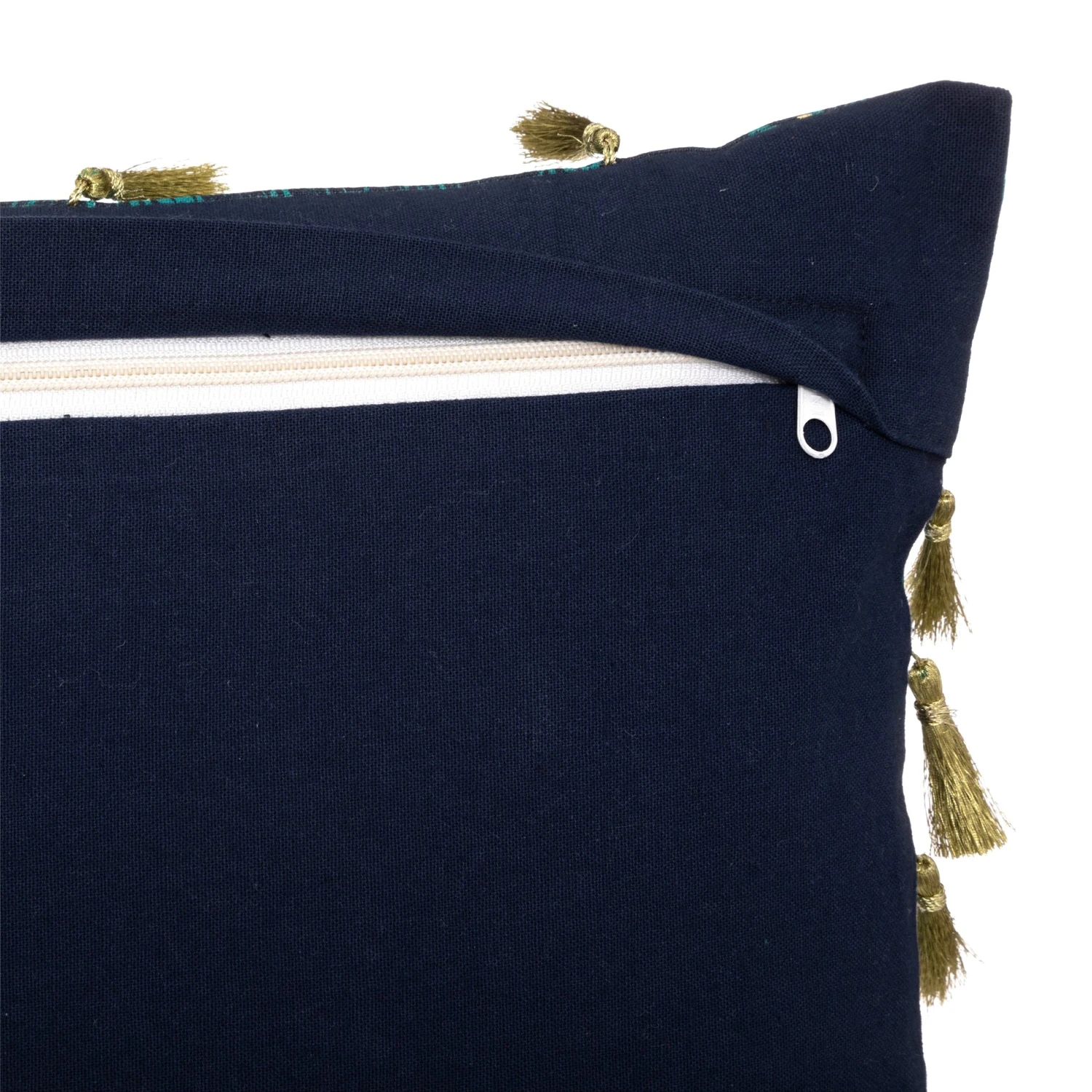 On aime autant le style original et la couleur bleu canard de cette housse de coussin en coton.