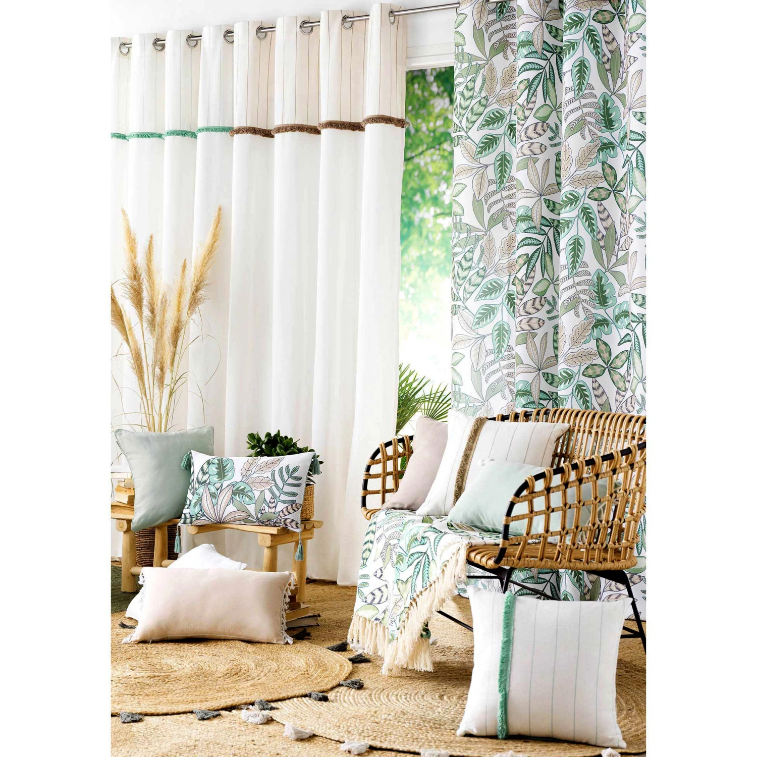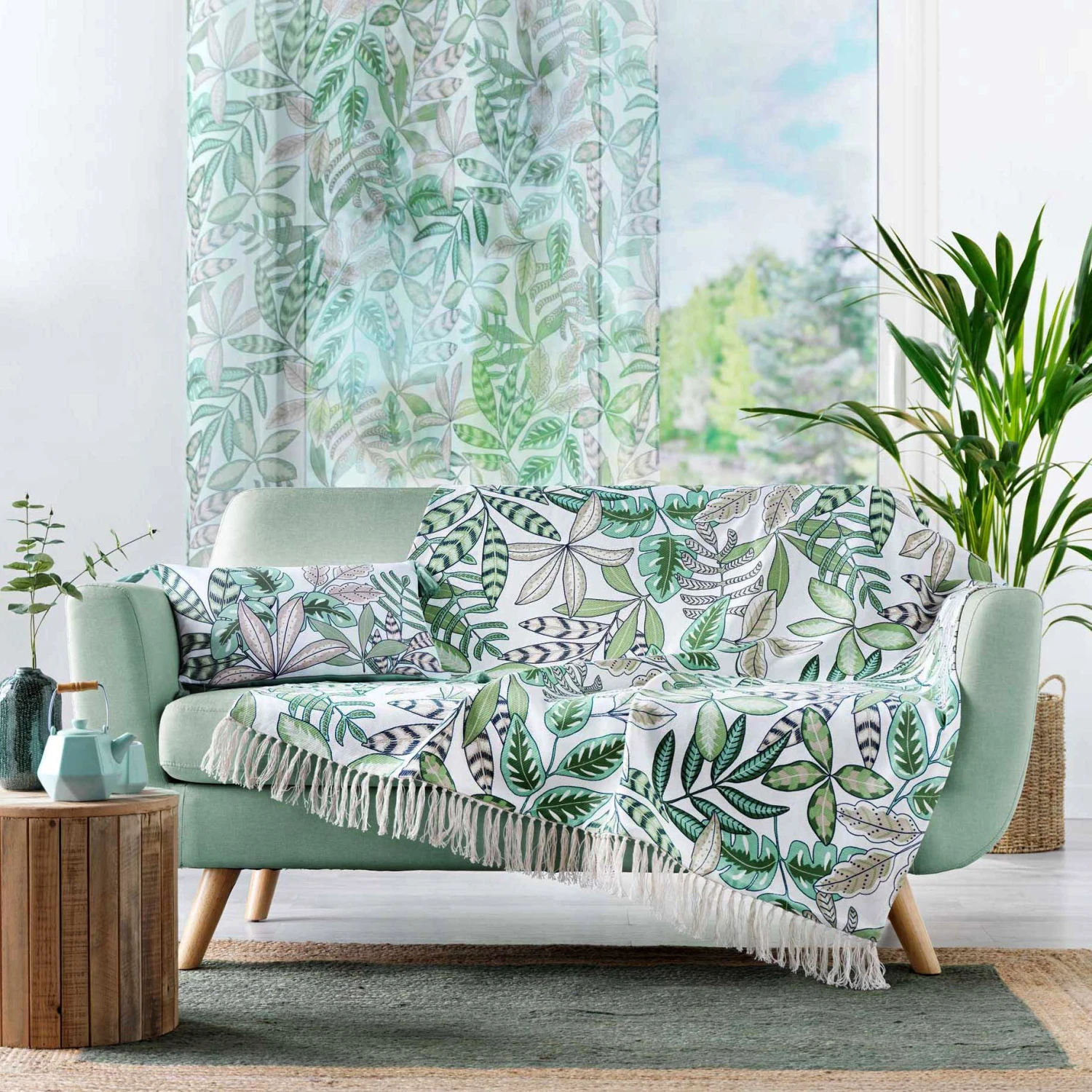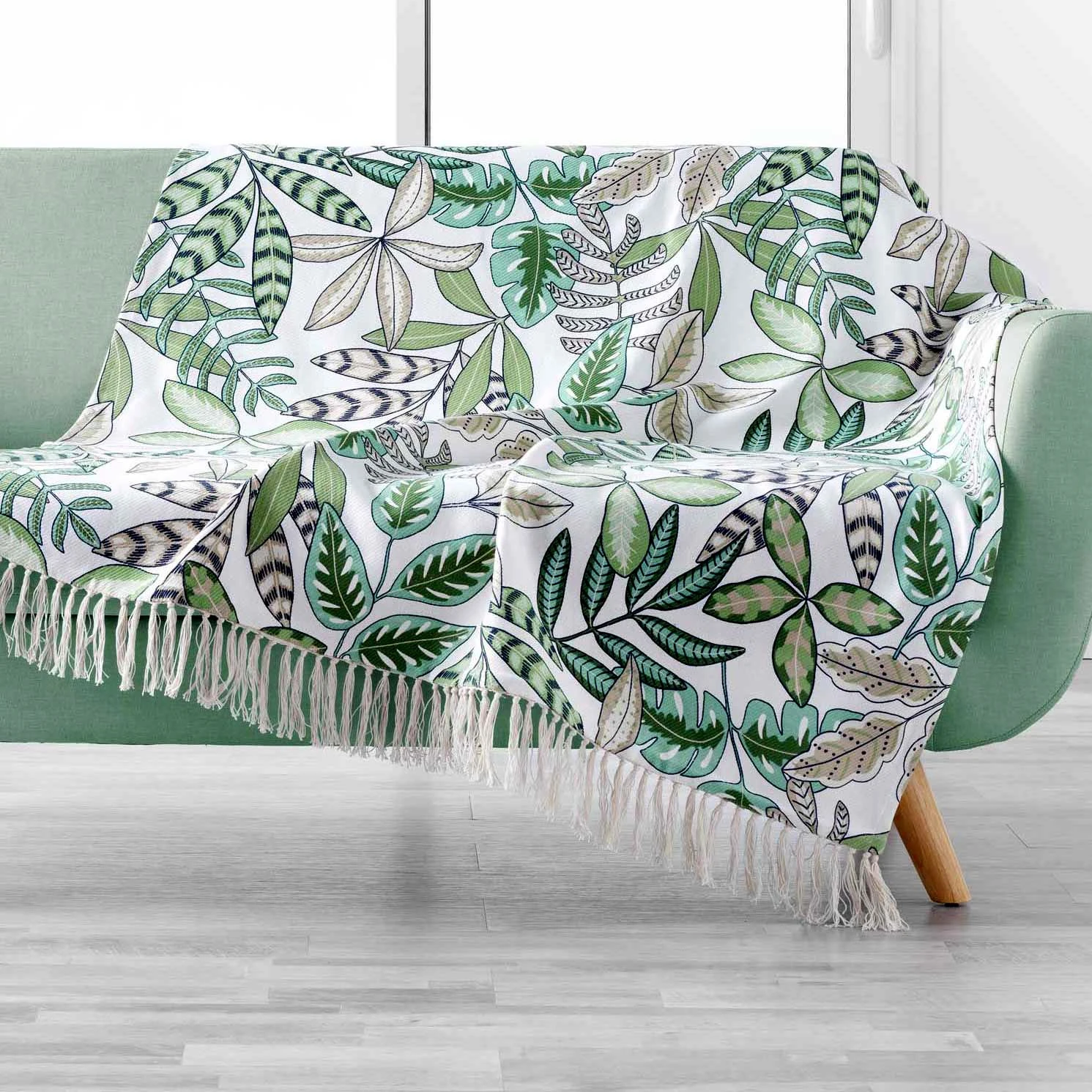 Exotisme et fraîcheur au rendez-vous avec ce très beau jeté de canapé à motif végétal.