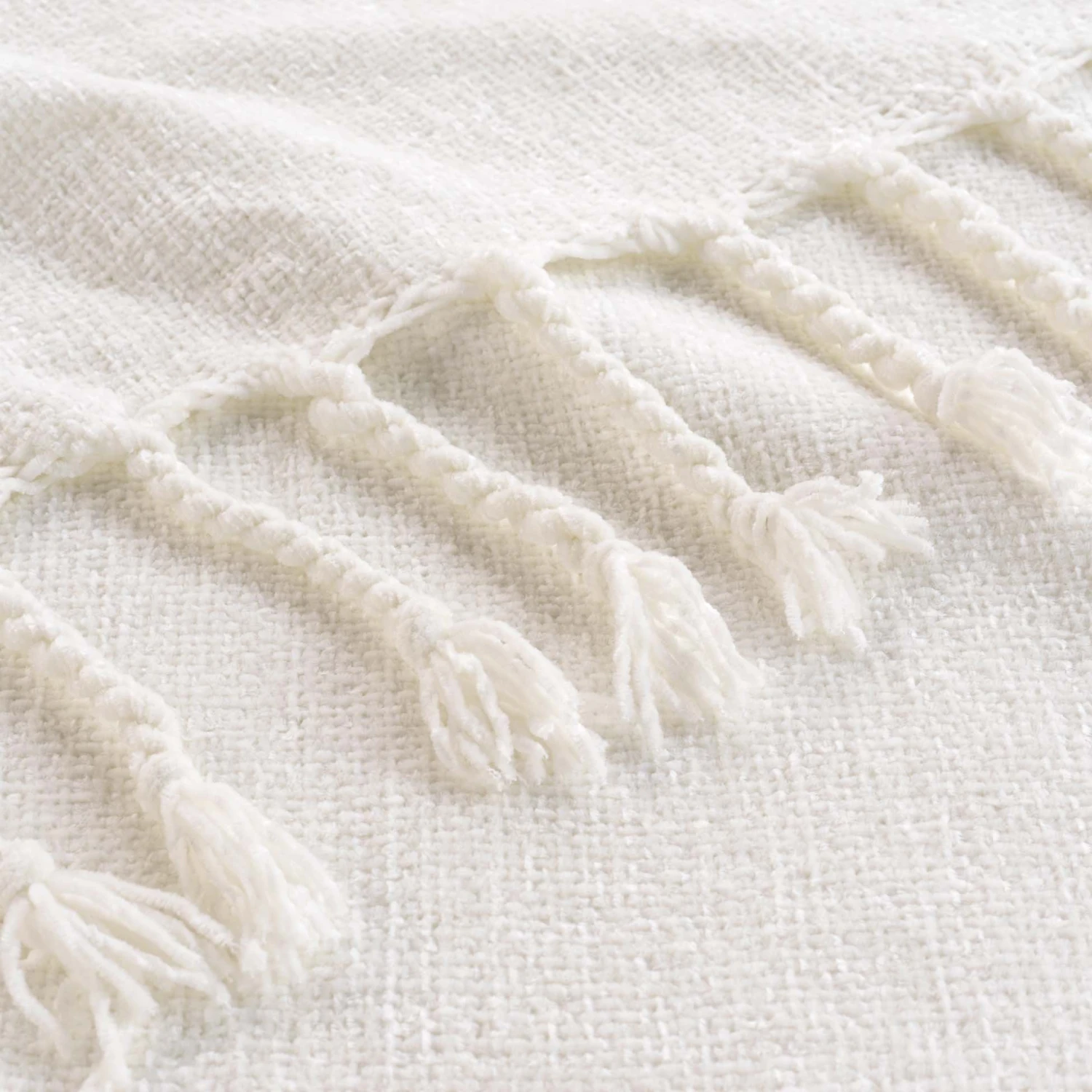 Un jeté de canapé à franges aussi lumineux que confortable, qui trouvera sa place dans tous les intérieurs.