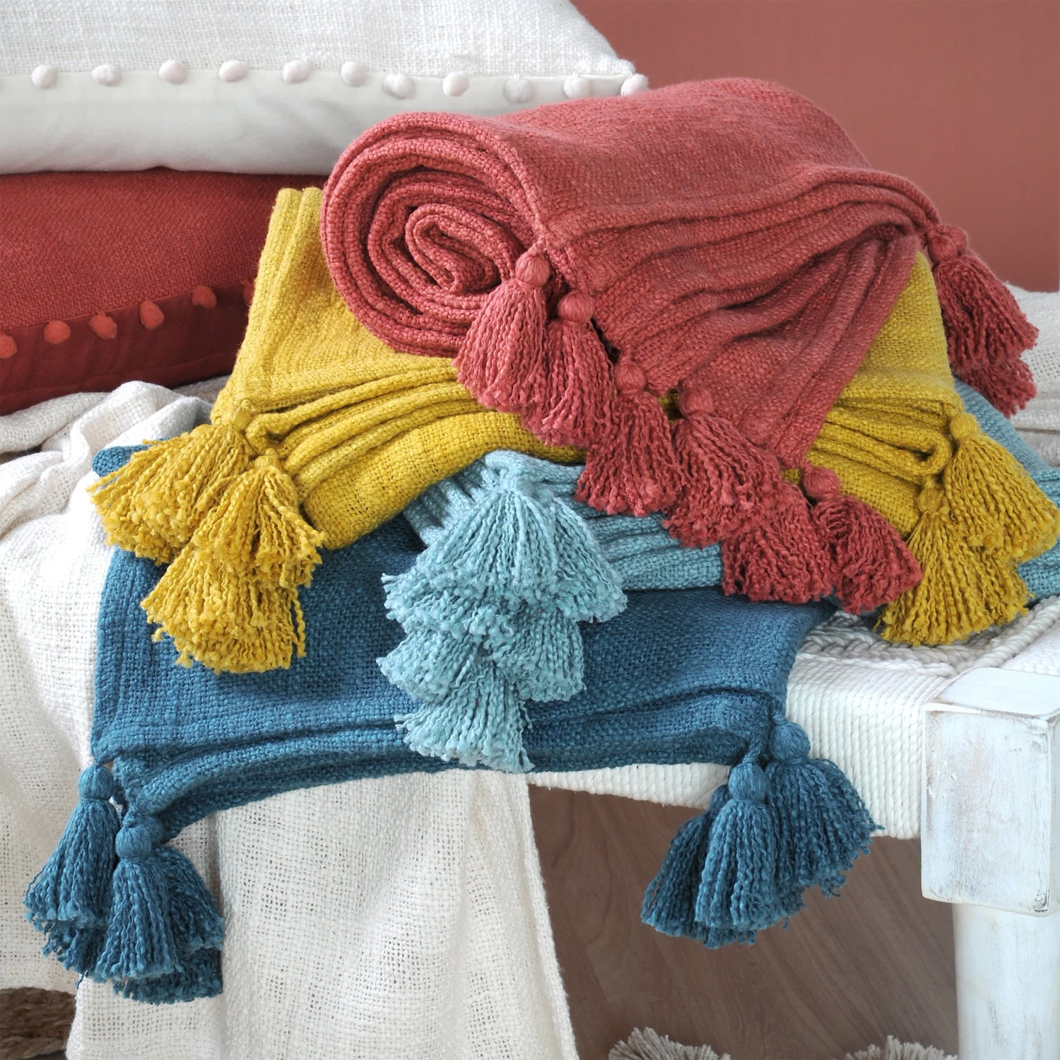 Ce joli jeté de canapé à pompons sera parfait pour apporter confort et chaleur dans la pièce.
