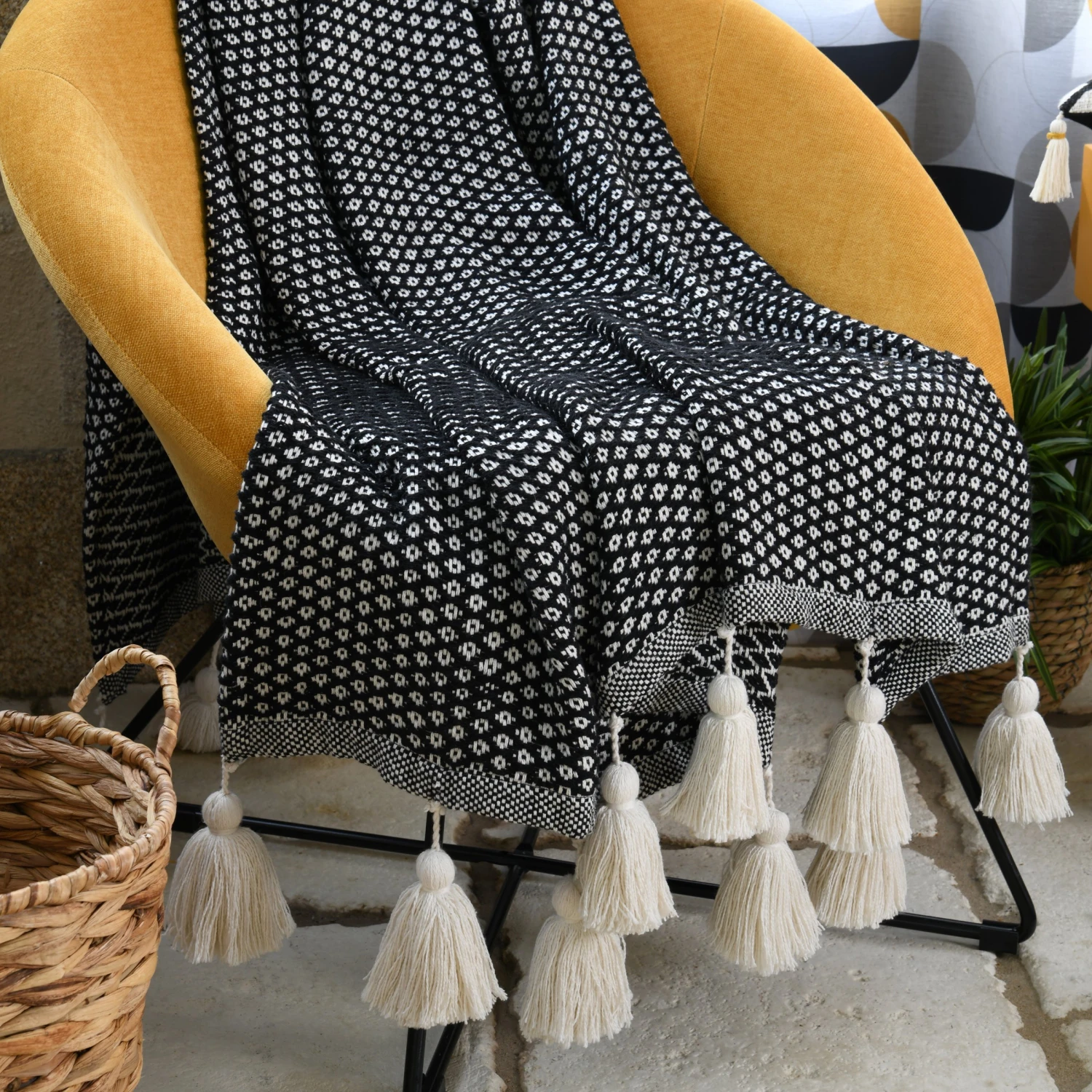 Imprimé : plaid à motif ethnique.