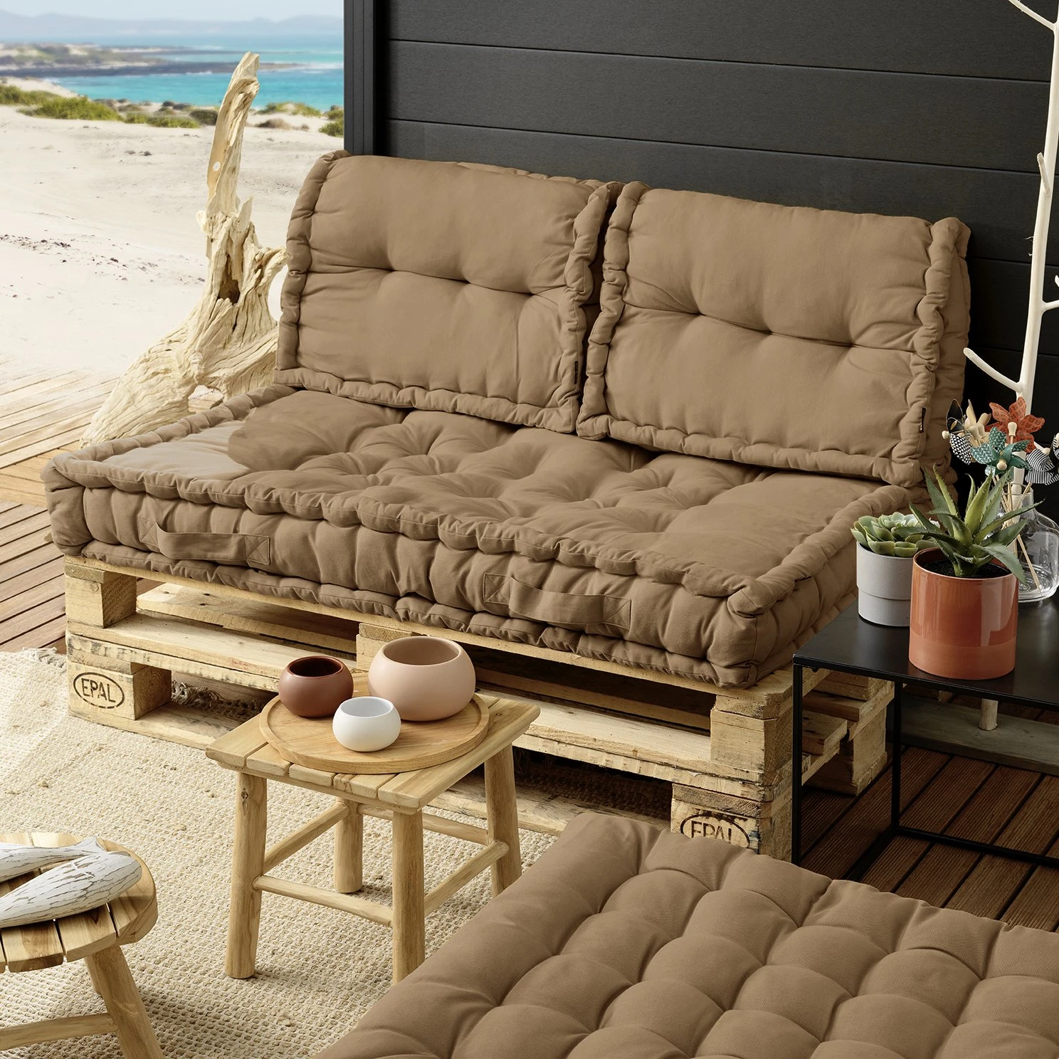 Ce kit de coussins pour palette vous permettra de créer un canapé en palettes en un tour de main. Il est composé de 2 coussins dossier et d’un matelas d’assise confortables et moelleux. Pensez à associer le lot d’accoudoirs de la même couleur pour finaliser votre canapé.