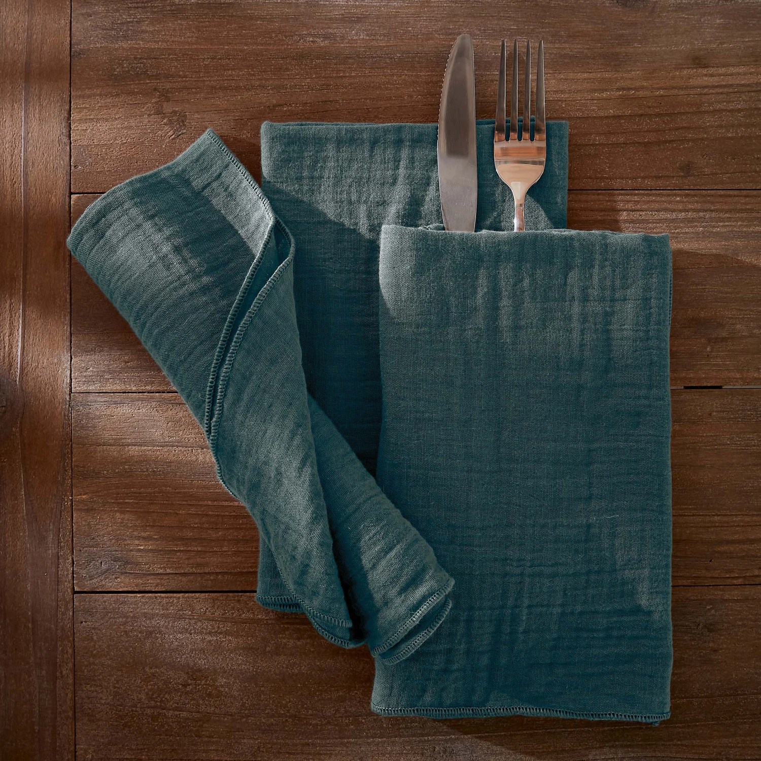 La gaze de coton s’invite autour de la table avec ce lot de 3 serviettes à la couleur originale.