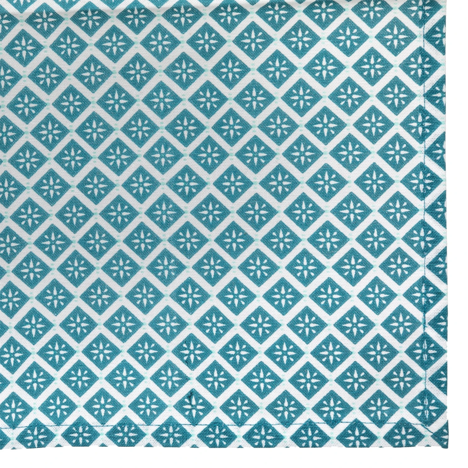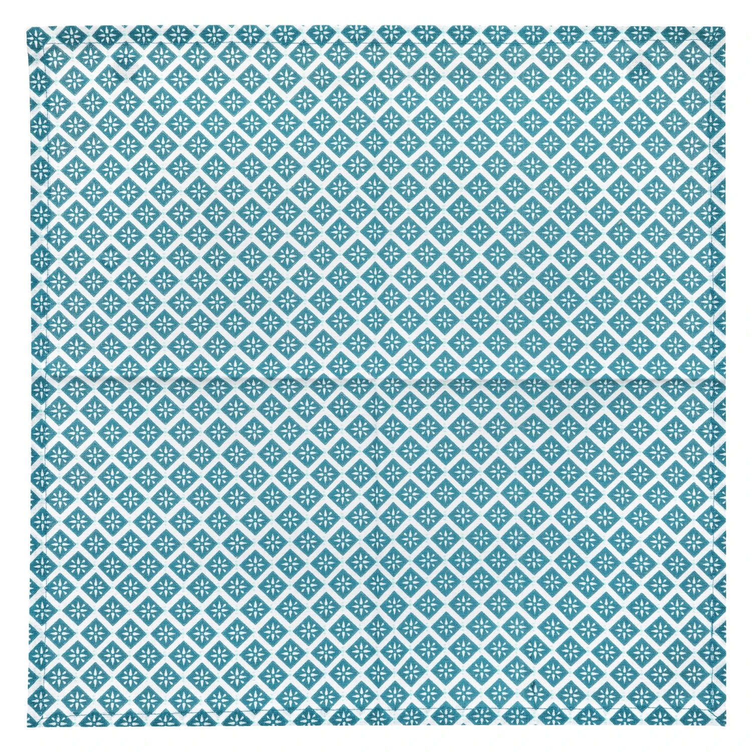 Couleur : fond blanc et motif bleu canard.
