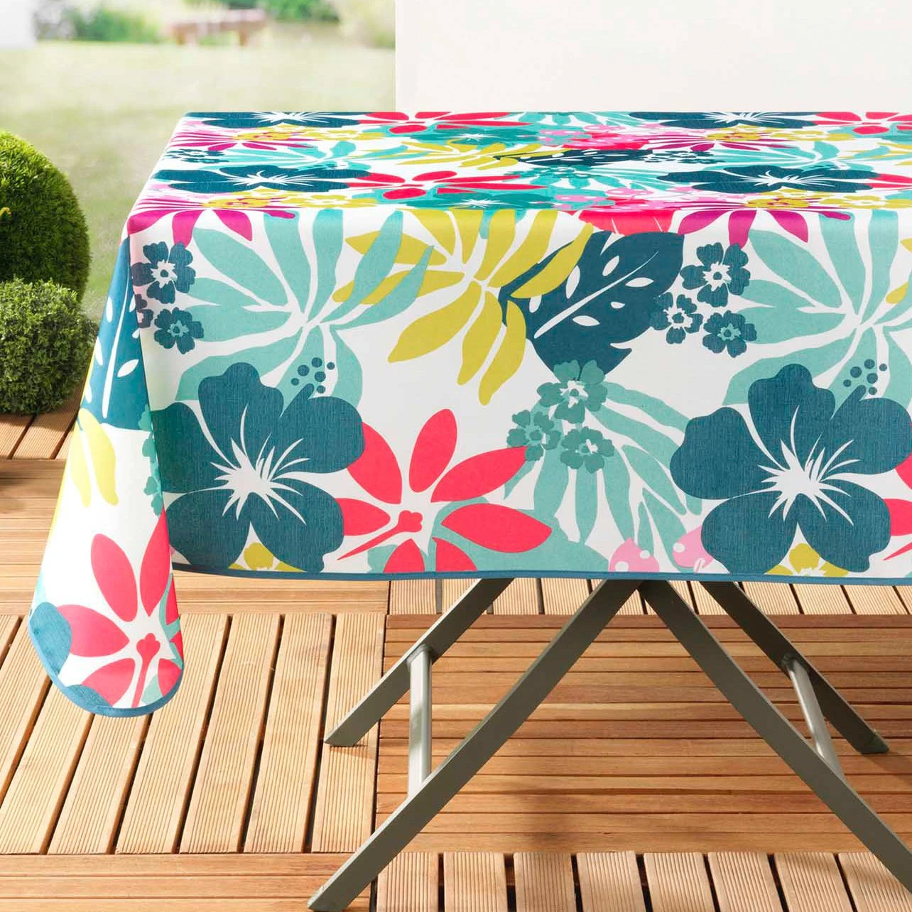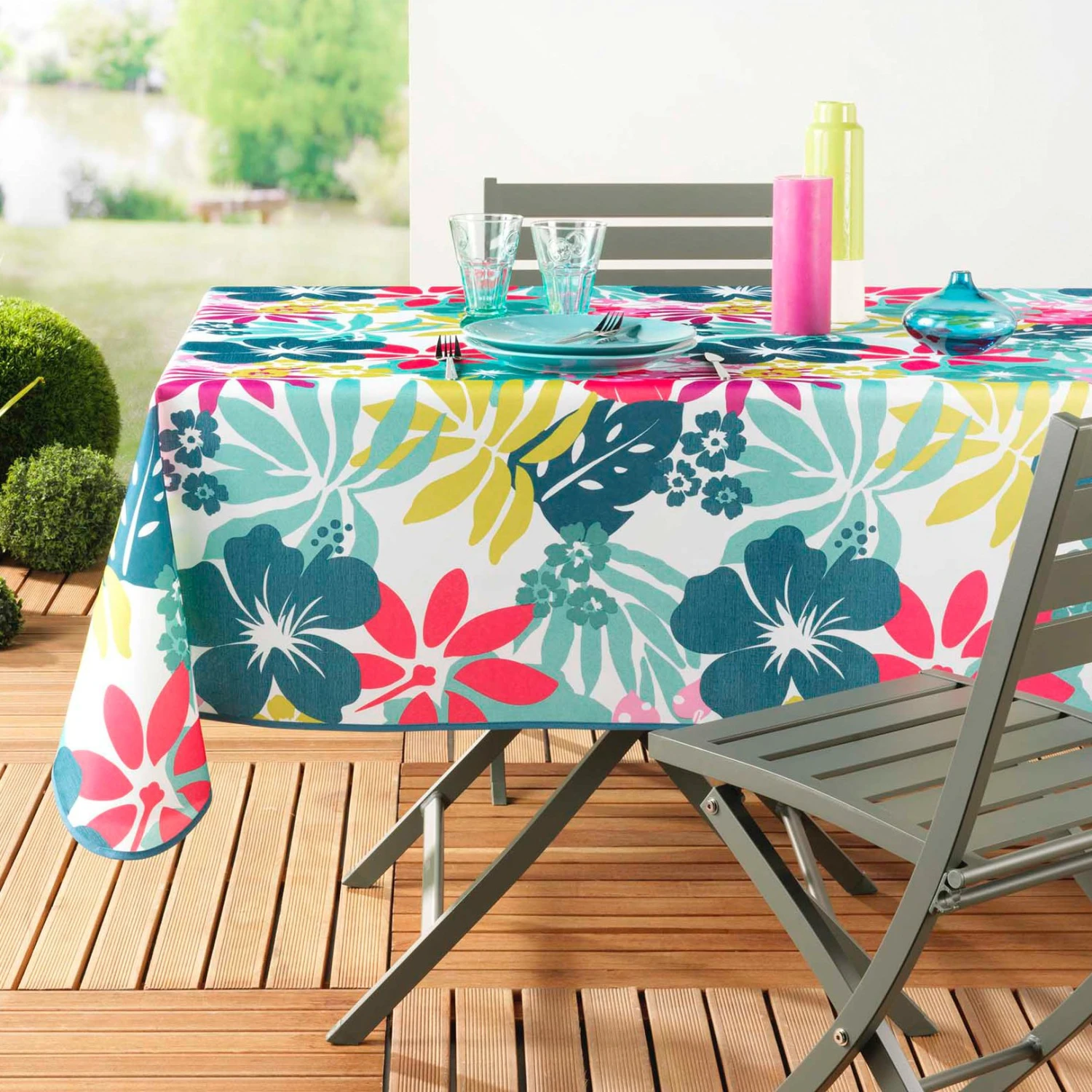 Une jolie nappe joyeuse et colorée, au style exotique et frais.