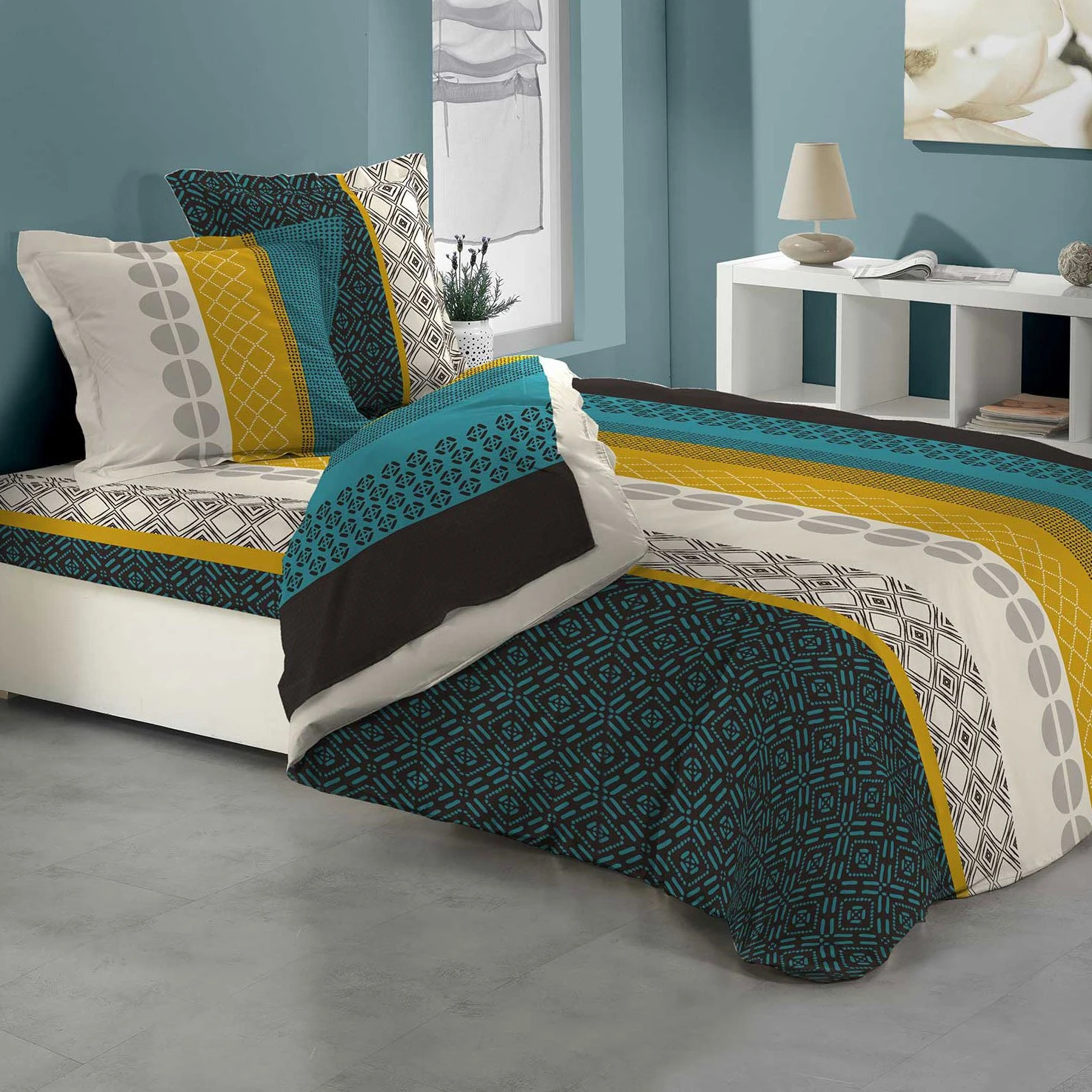 Cette parure de draps composée de 4 pièces coordonnées sera parfaite pour un lit confortable et coloré.