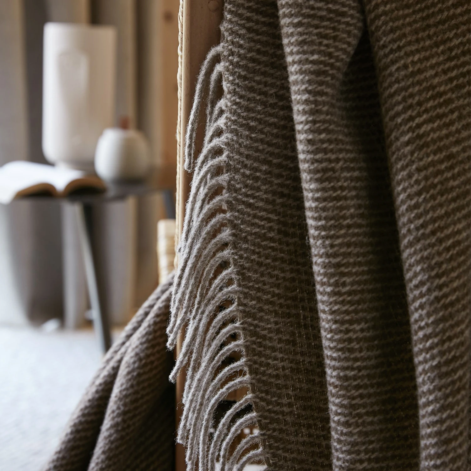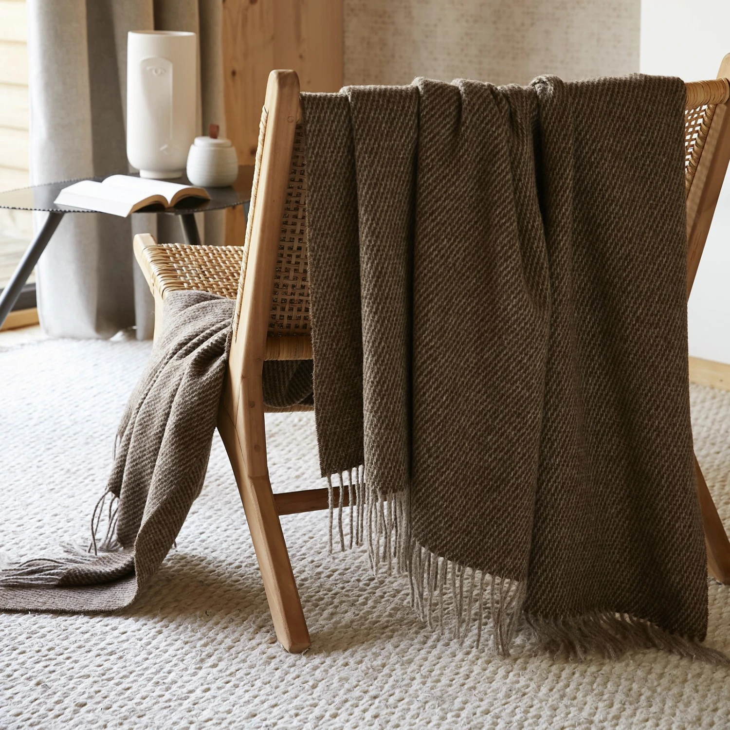 Ce plaid est constitué de laine naturelle provenant de Nouvelle-Zélande, aux fibres bio-dégradables et recyclables.