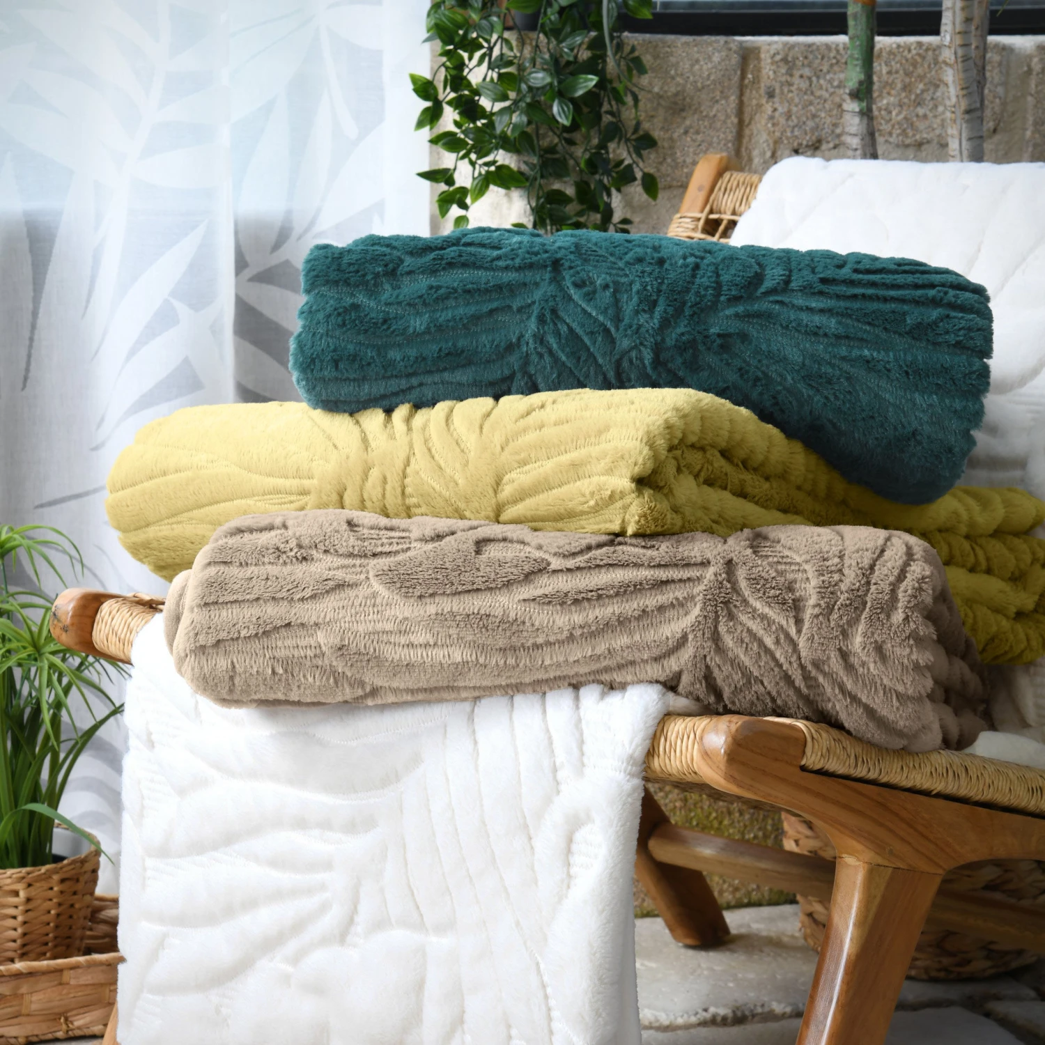 Craquez pour la douceur de ce plaid de la collection Quito, avec son motif feuillage en relief.