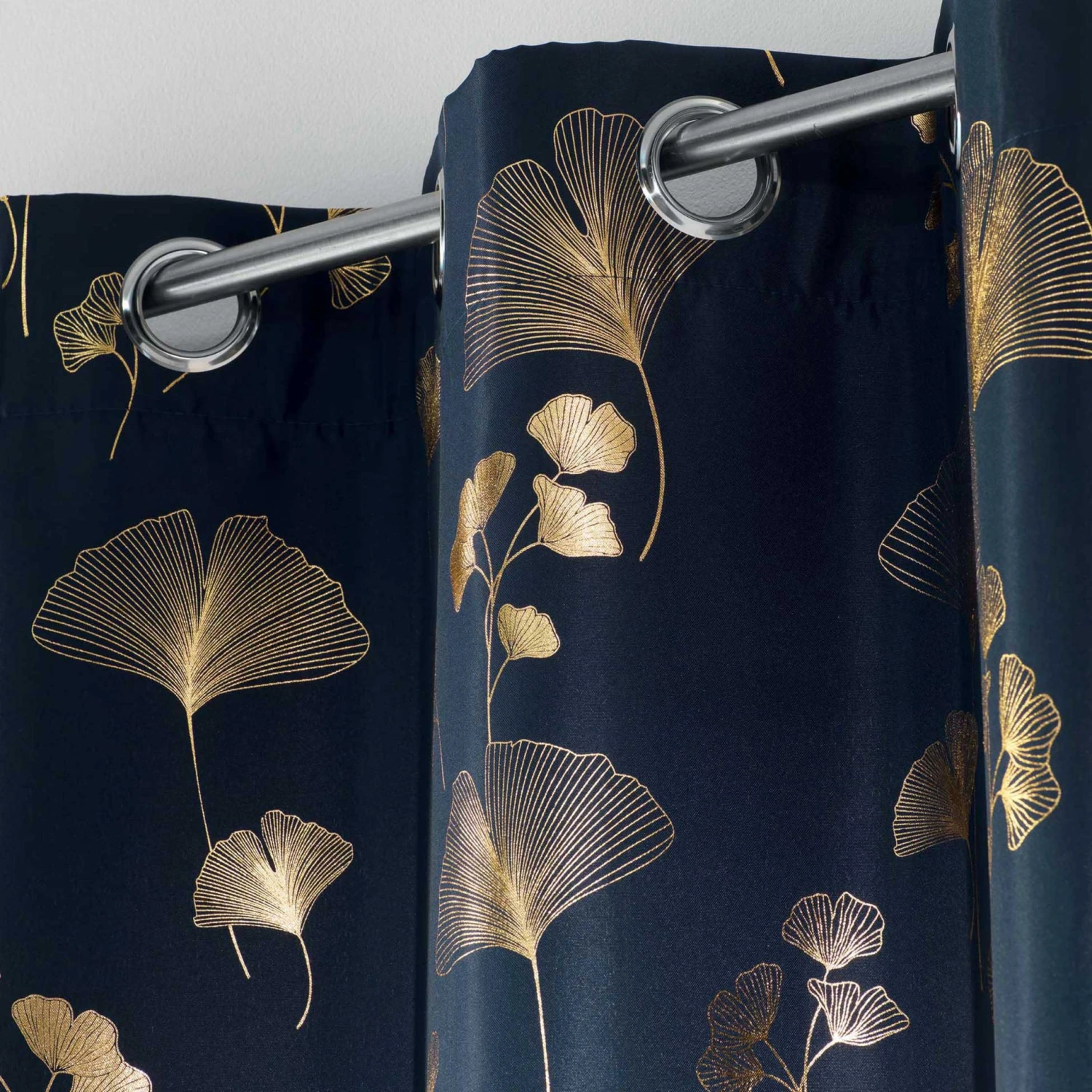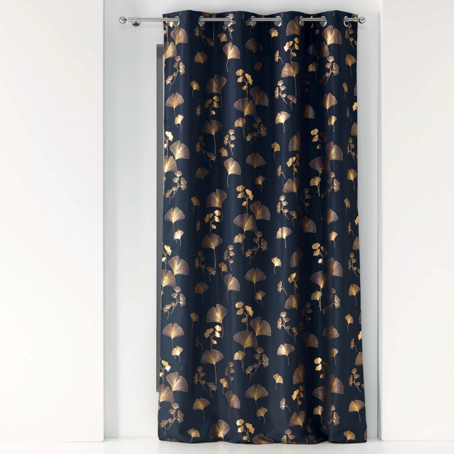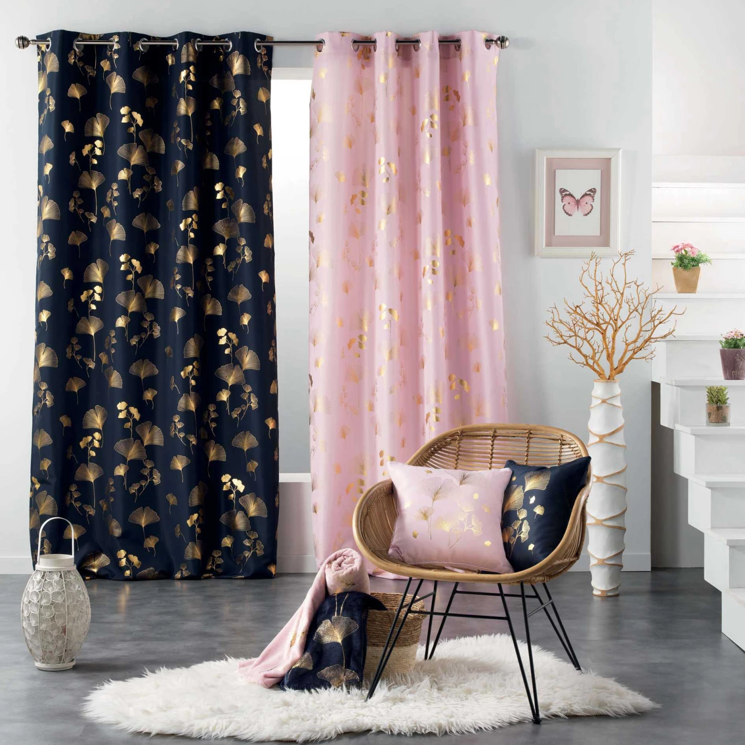 Ce rideau à l’imprimé floral métallisé possède des reflets dorés très originaux.