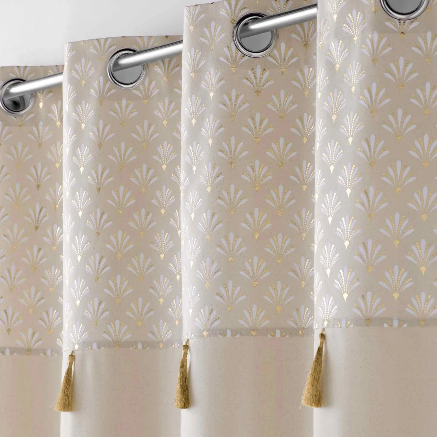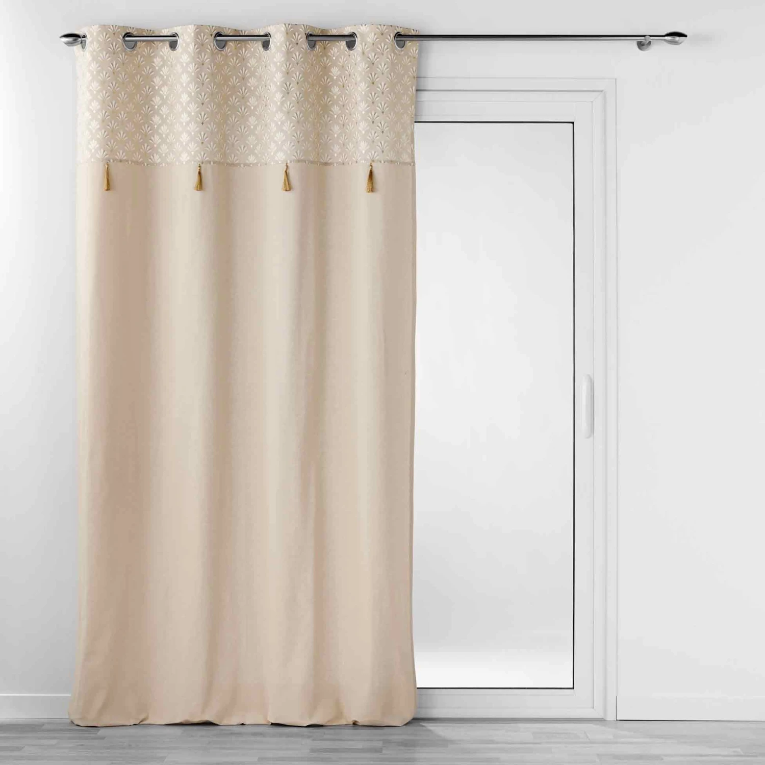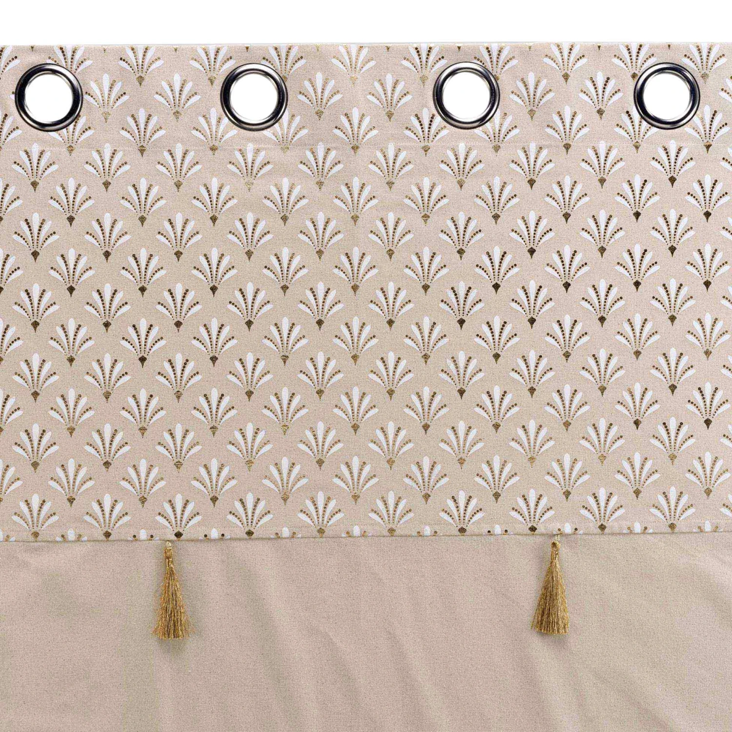 Imprimé : rideau à motif ethnique et à pompons.