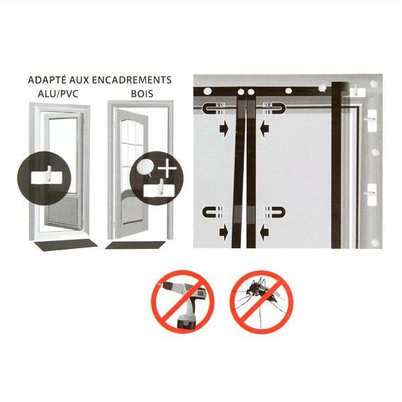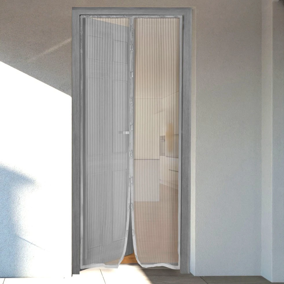 Ce rideau de porte est composé 2 moustiquaires avec fermetures aimantées qui protégeront vos espaces intérieurs. Adapté aux encadrements Alu / PVC et bois, il se fixe très facilement grâce aux adhésifs et punaises inclus. Couleur : gris.