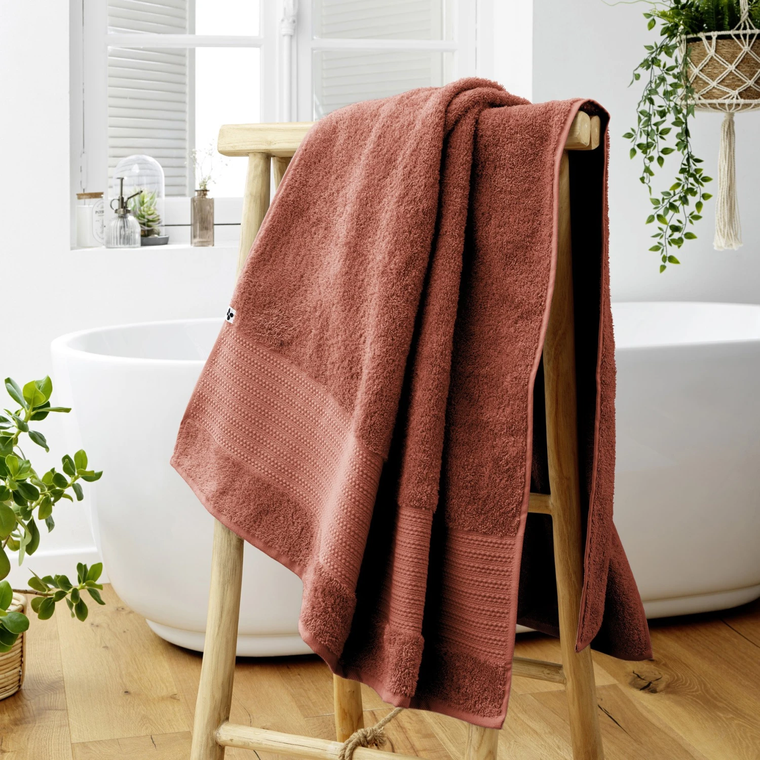 Une grande serviette de bain à la qualité 100 % coton bio, pour un confort exceptionnel dans la salle de bain.