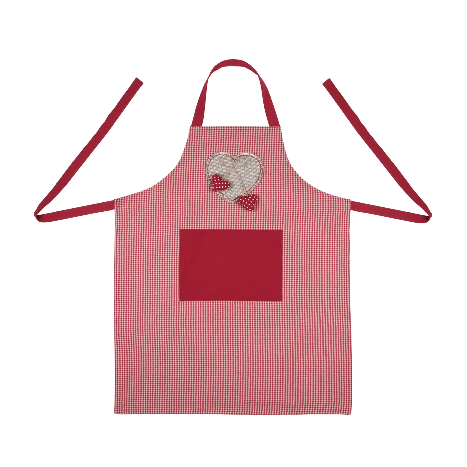 Imprimé : tablier à motif coeur et à carreaux.