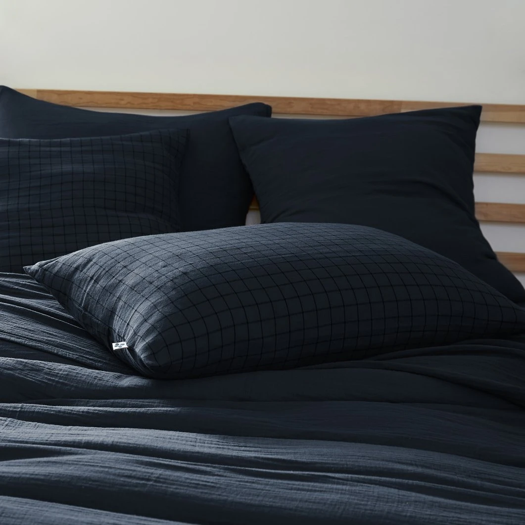 Imprimé : taie à petits carreaux.