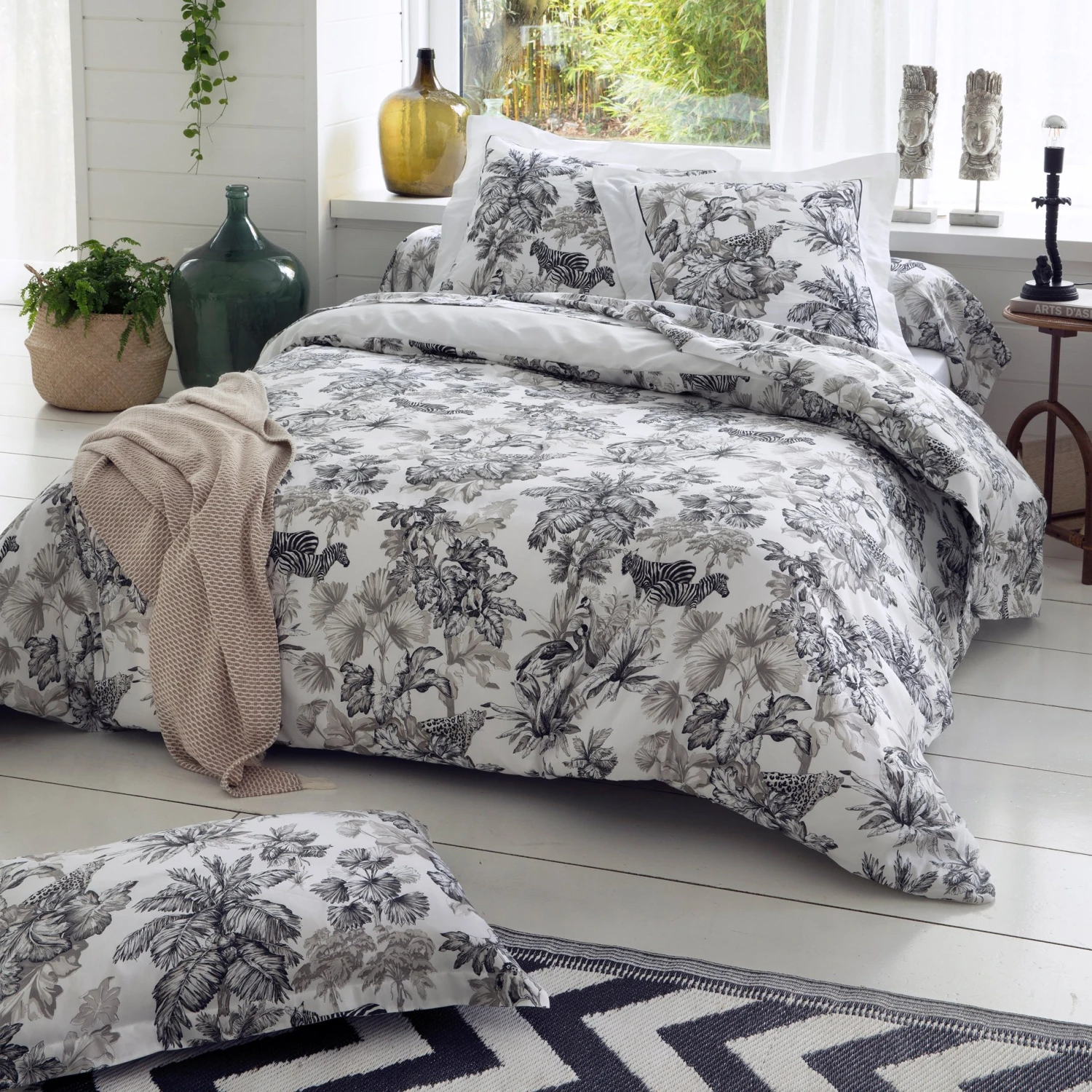 Imprimé : taie à motifs animaux de la savane.