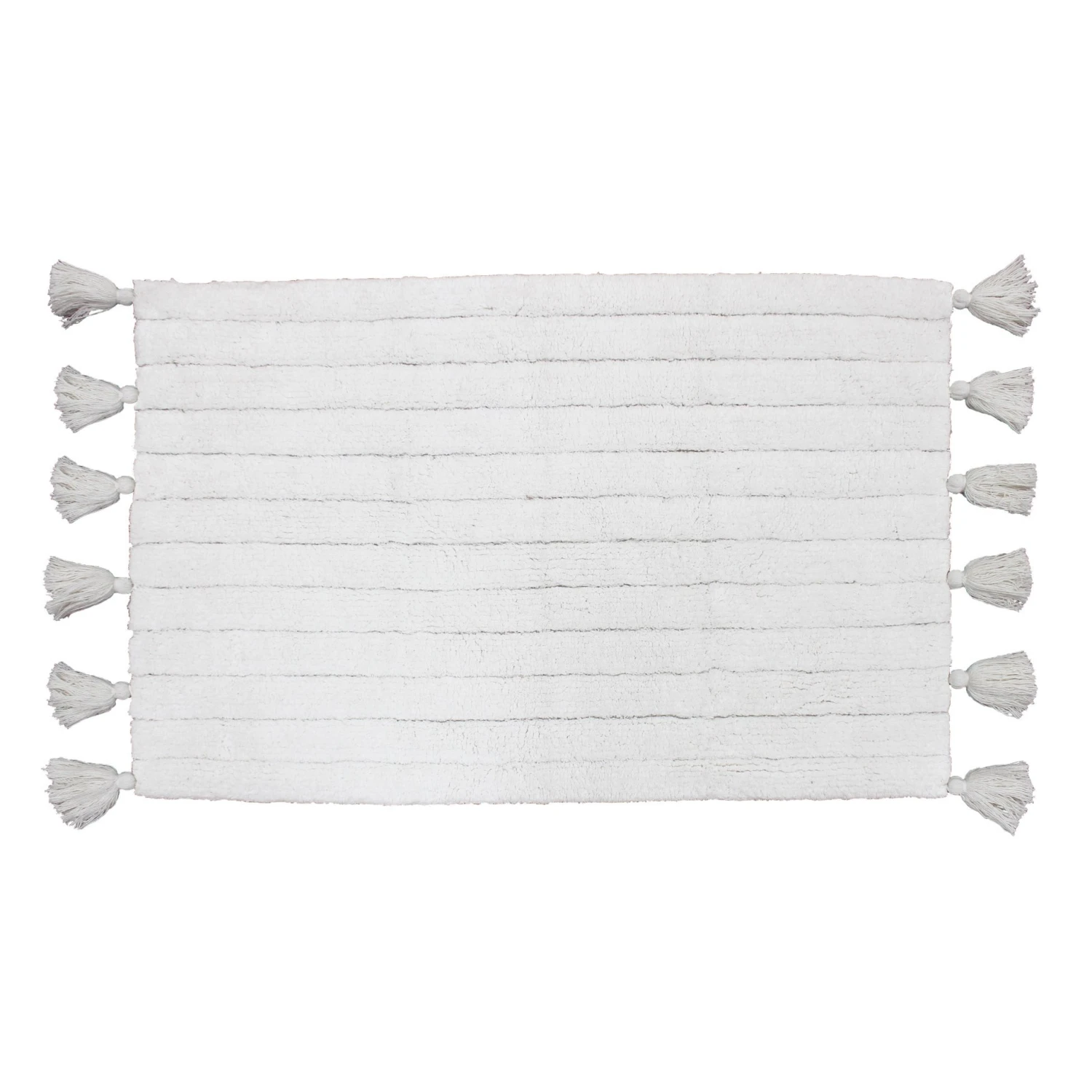 Finition : tapis à pompons.