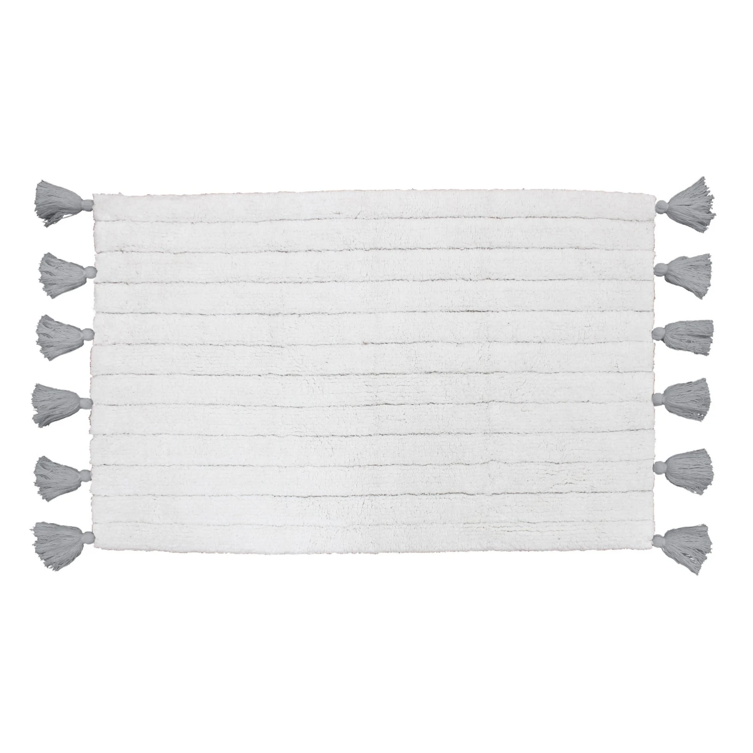 Couleur : tapis blanc et pompons gris.