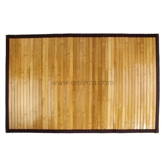 Ce tapis de bain à lattes apporte de l’exotisme dans la salle de bain.