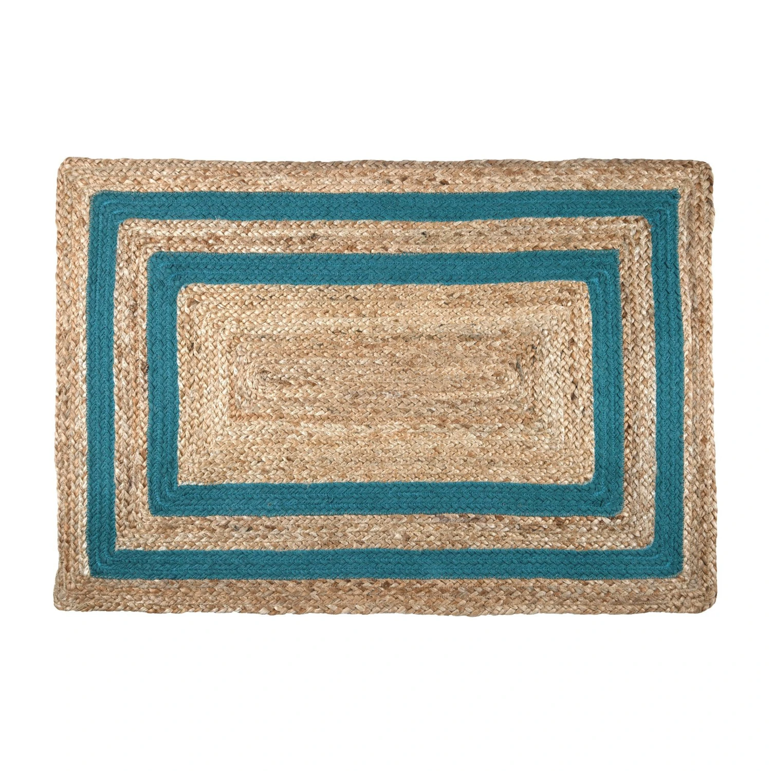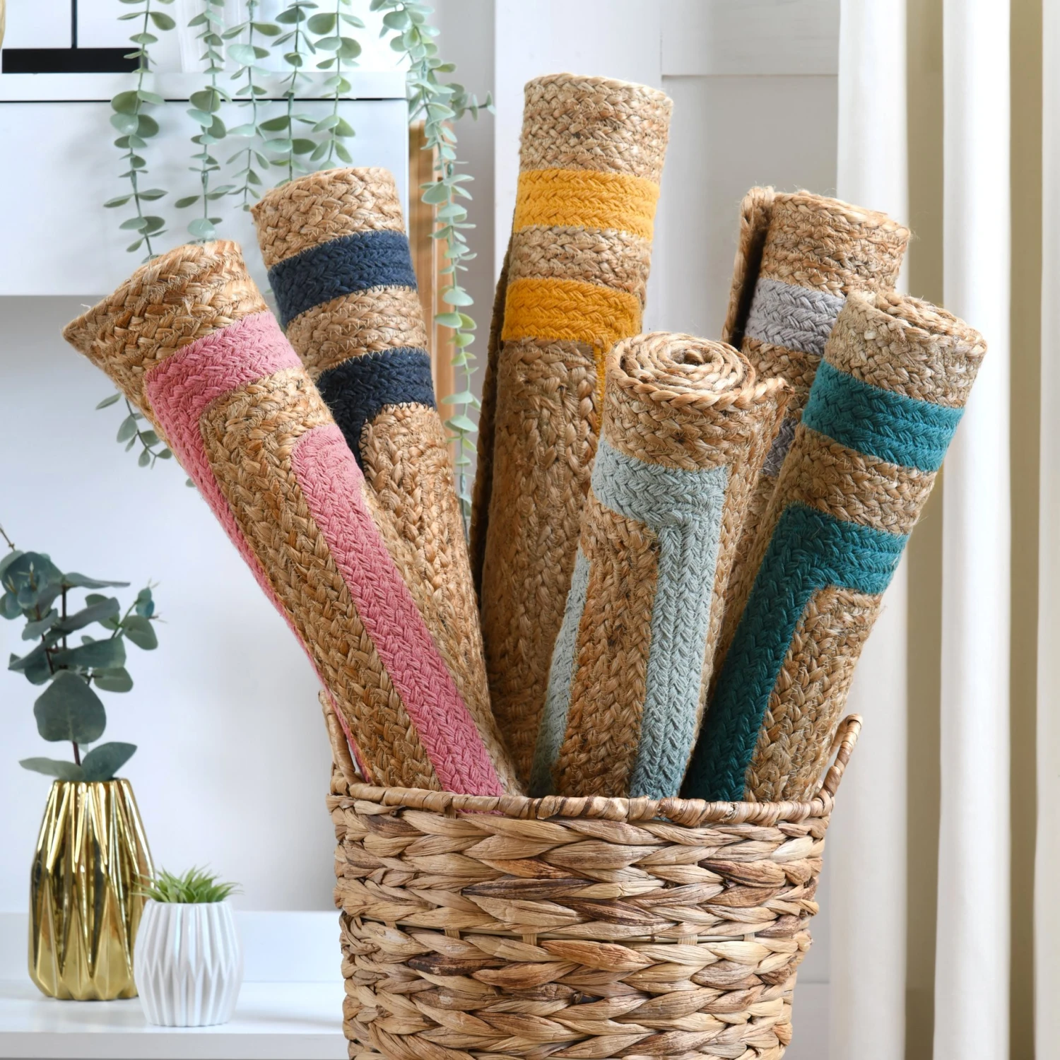 Rien de mieux que ce tapis en jute et coton pour une touche colorée et naturelle dans la pièce.