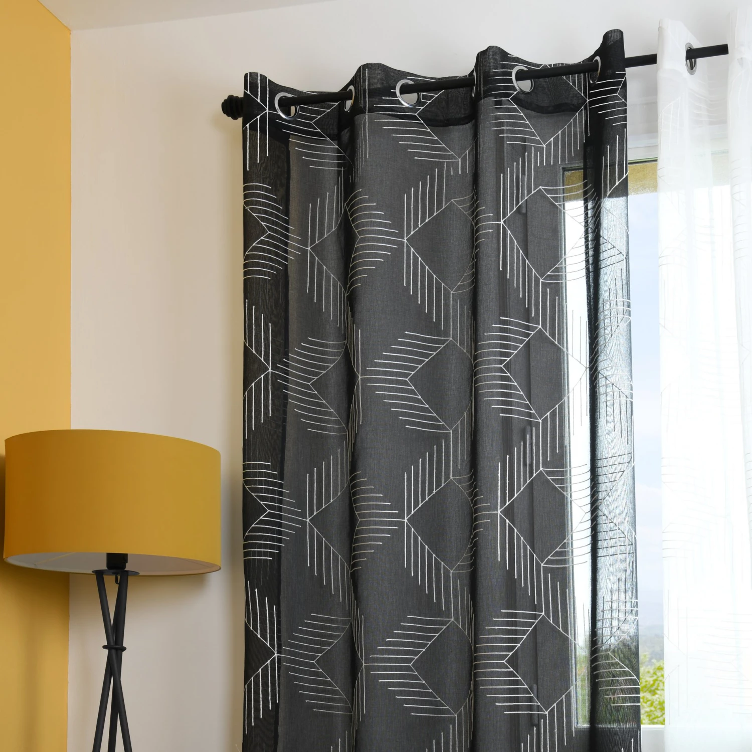 Craquez pour ce voilage moderne à motifs géométriques brodés.