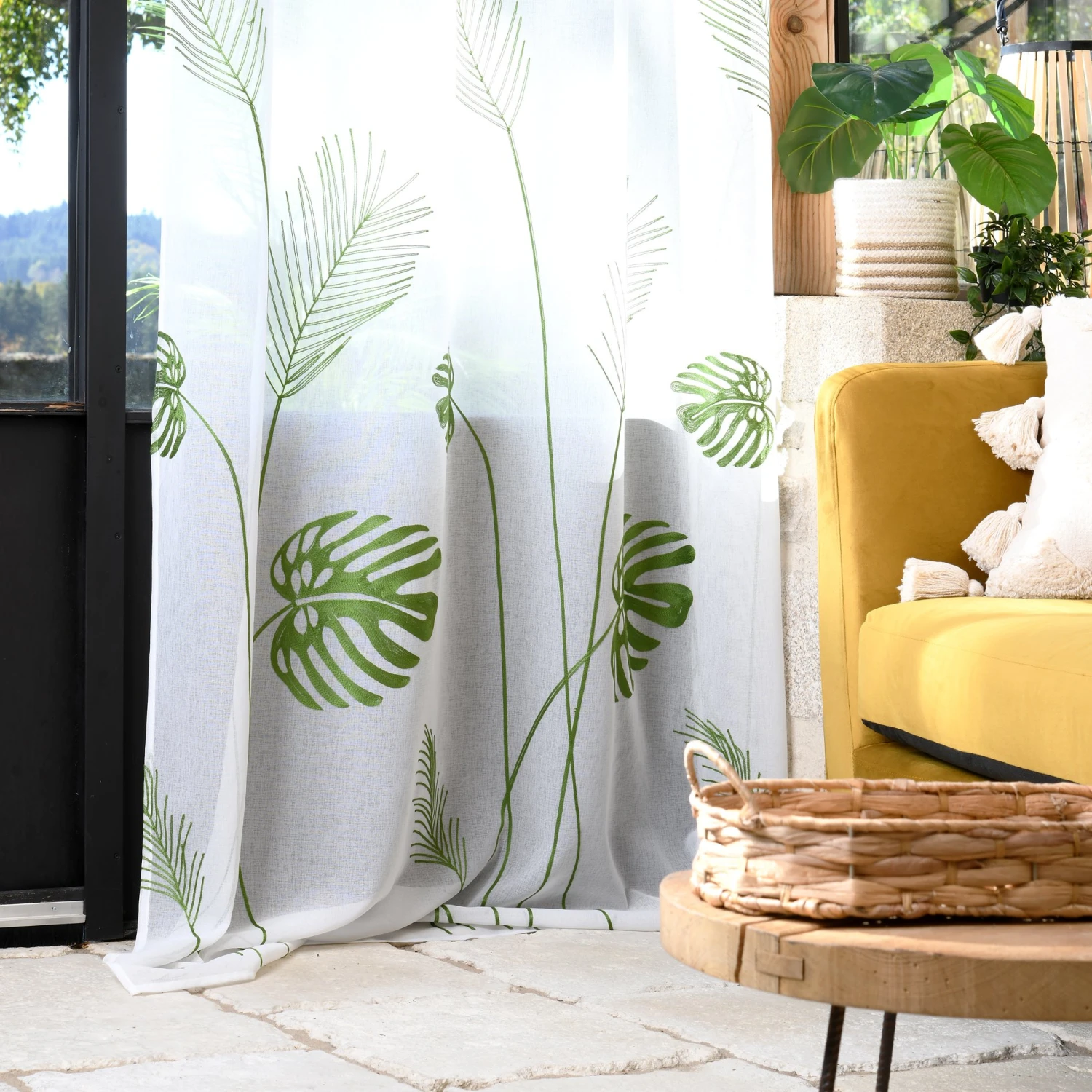 Imprimé : voilage à motif feuillage.